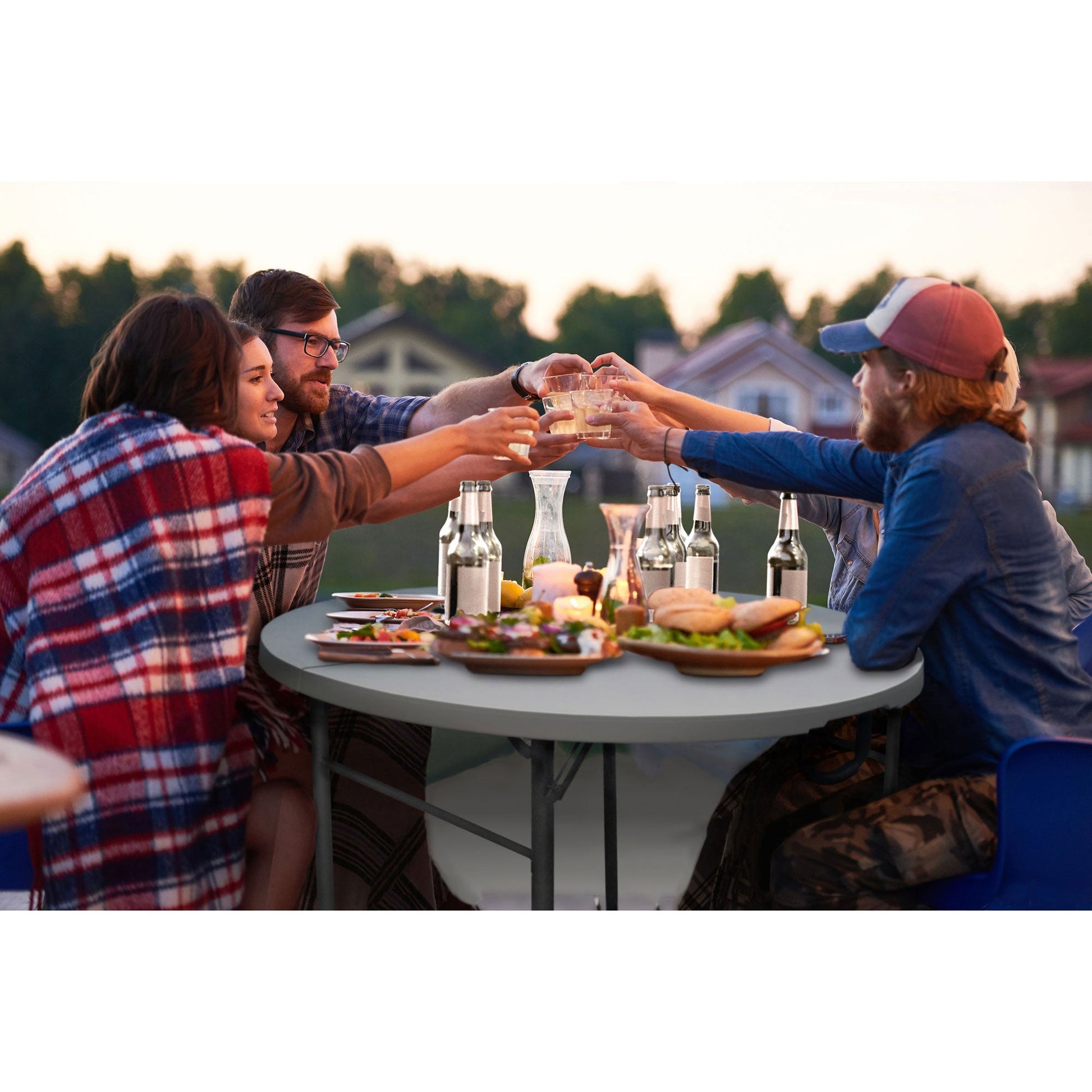- Round, 4-foot folding table, great for outdoor dining, family reunions, and parties, or as a work table anywhere