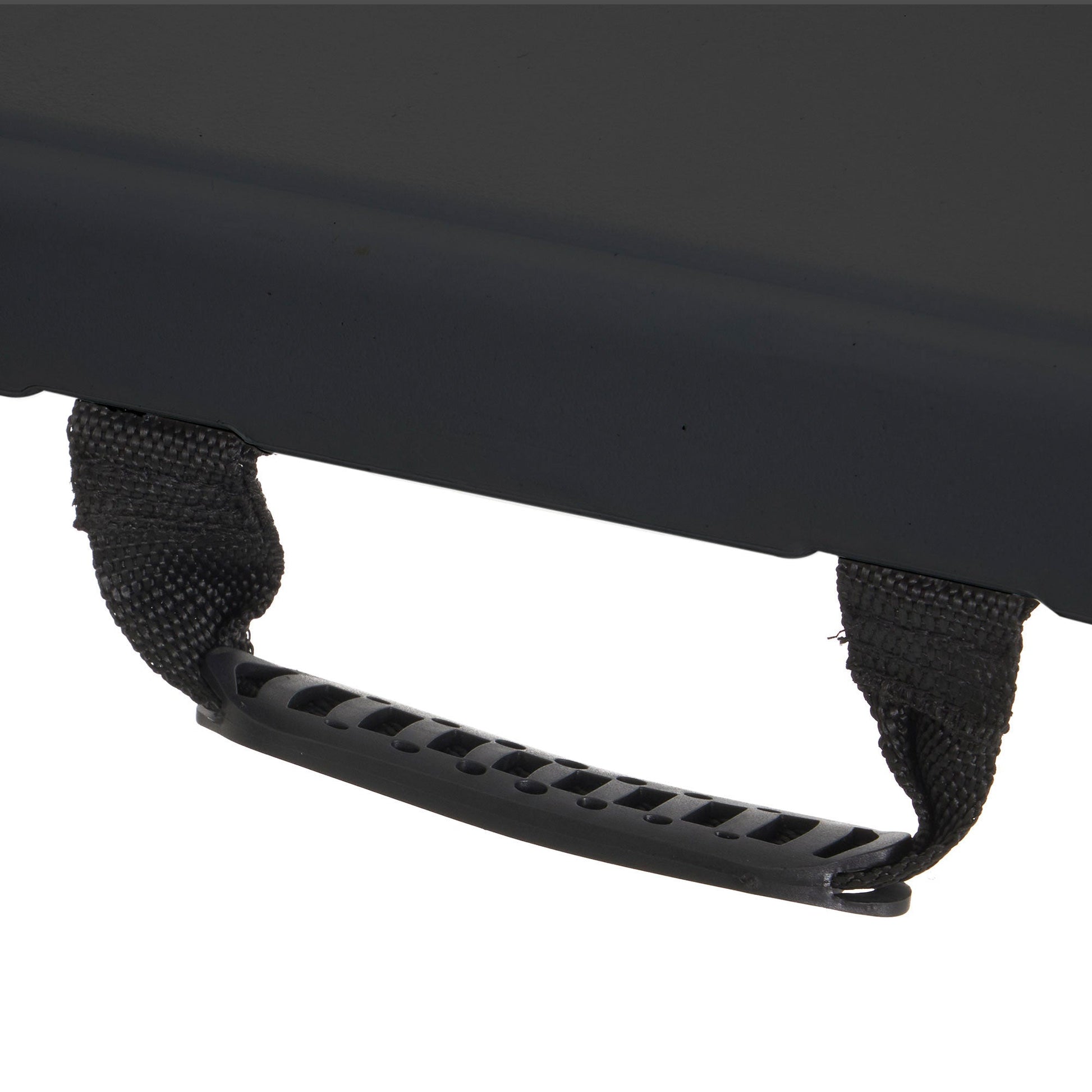 - Folds neatly in half with a convenient carrying handle for easy transportation and compact storage