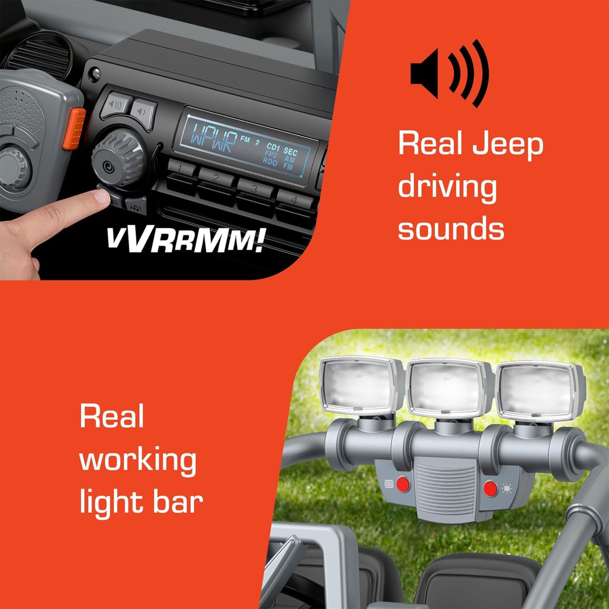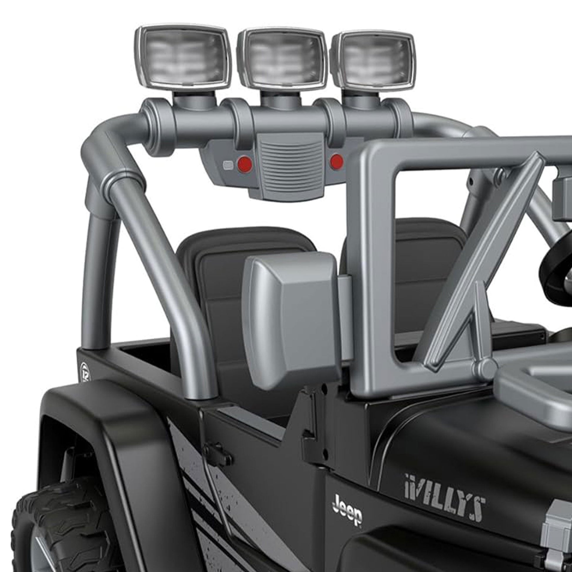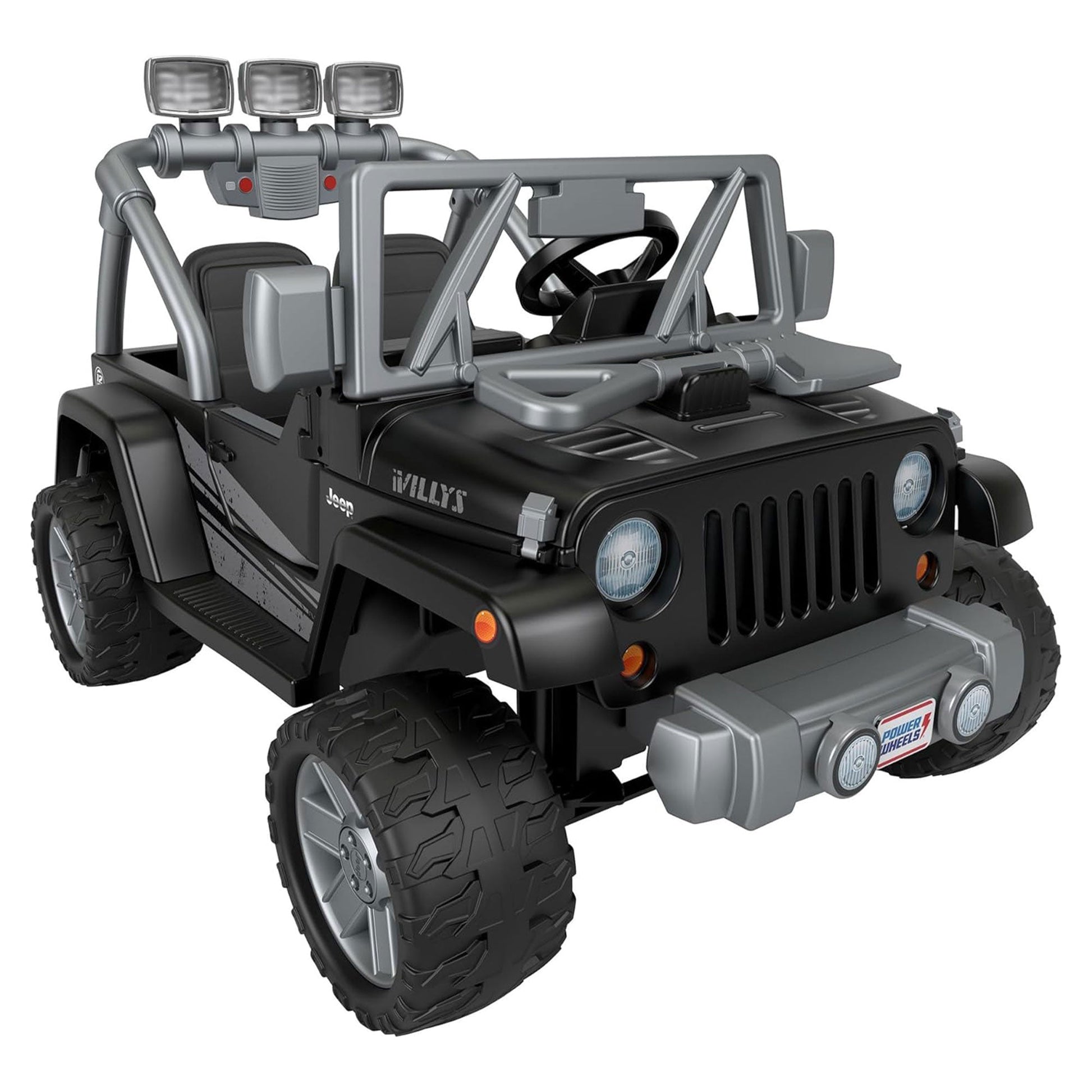- Let your kids set off on exciting off-road adventures with this battery-powered 2-seater ride-on toy styled with a realistic Jeep Wrangler Willys design