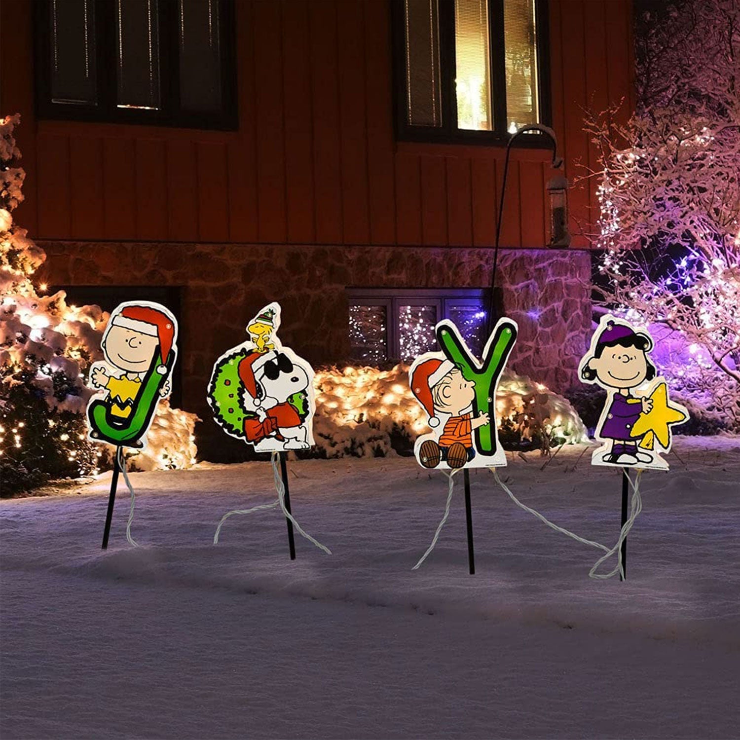 - Officially licensed 24-inch Peanuts Snoopy and 8-inch Joy Christmas pathway markers fill your lawn with festive cheer this holiday season