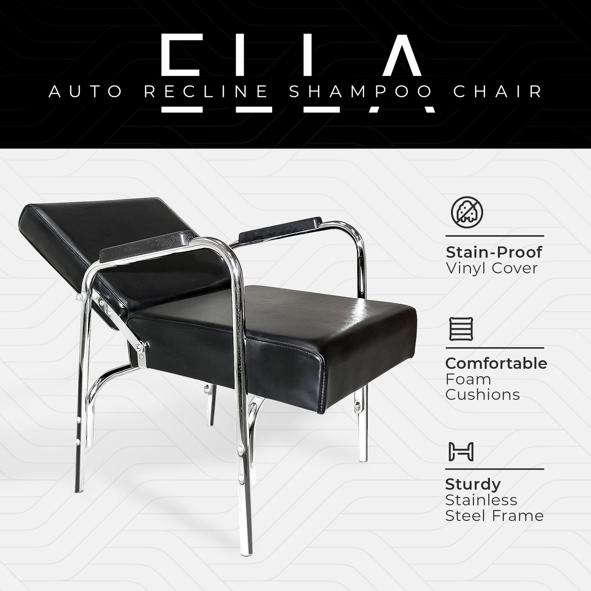 PureSana Chromium Ella Professional Auto Reclining Vinyl Shampoo Chair, Black