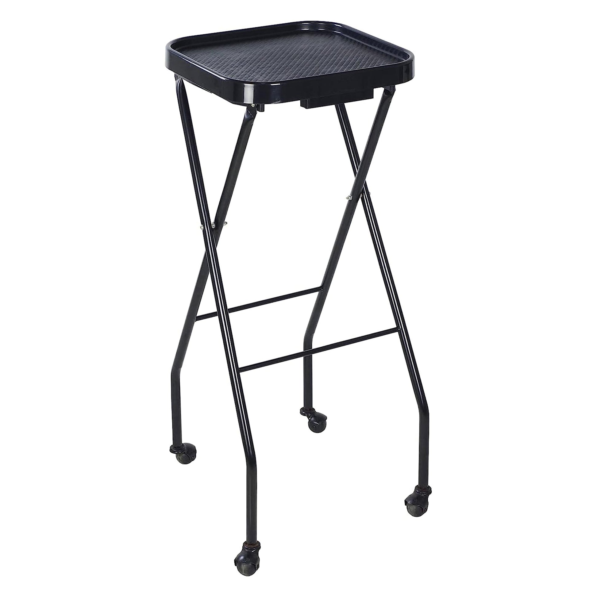 PureSana Chromium Professional Foldaway Salon Service Tray with Wheels, Black
