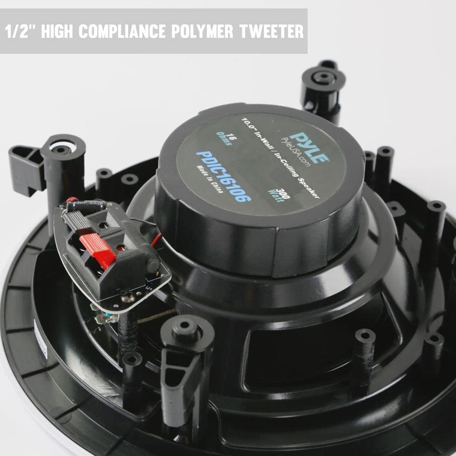 - 2-pack includes (4) 10-inch in-wall ceiling speaker system for amazing sound in any room of the house