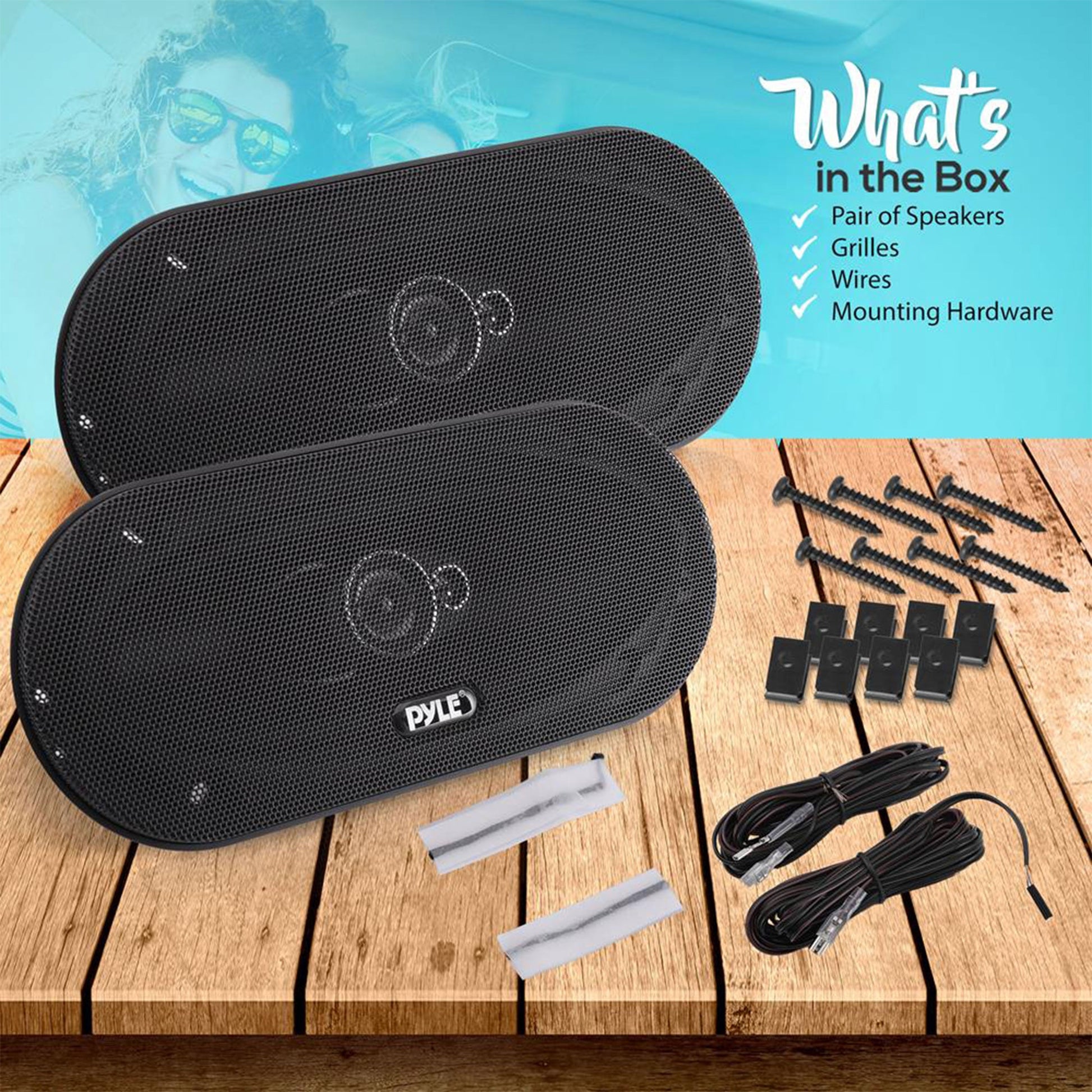 Pyle 4 Inch 3 Way Triaxial Pro Audio Car Universal Stereo Speakers, (Set of 2)