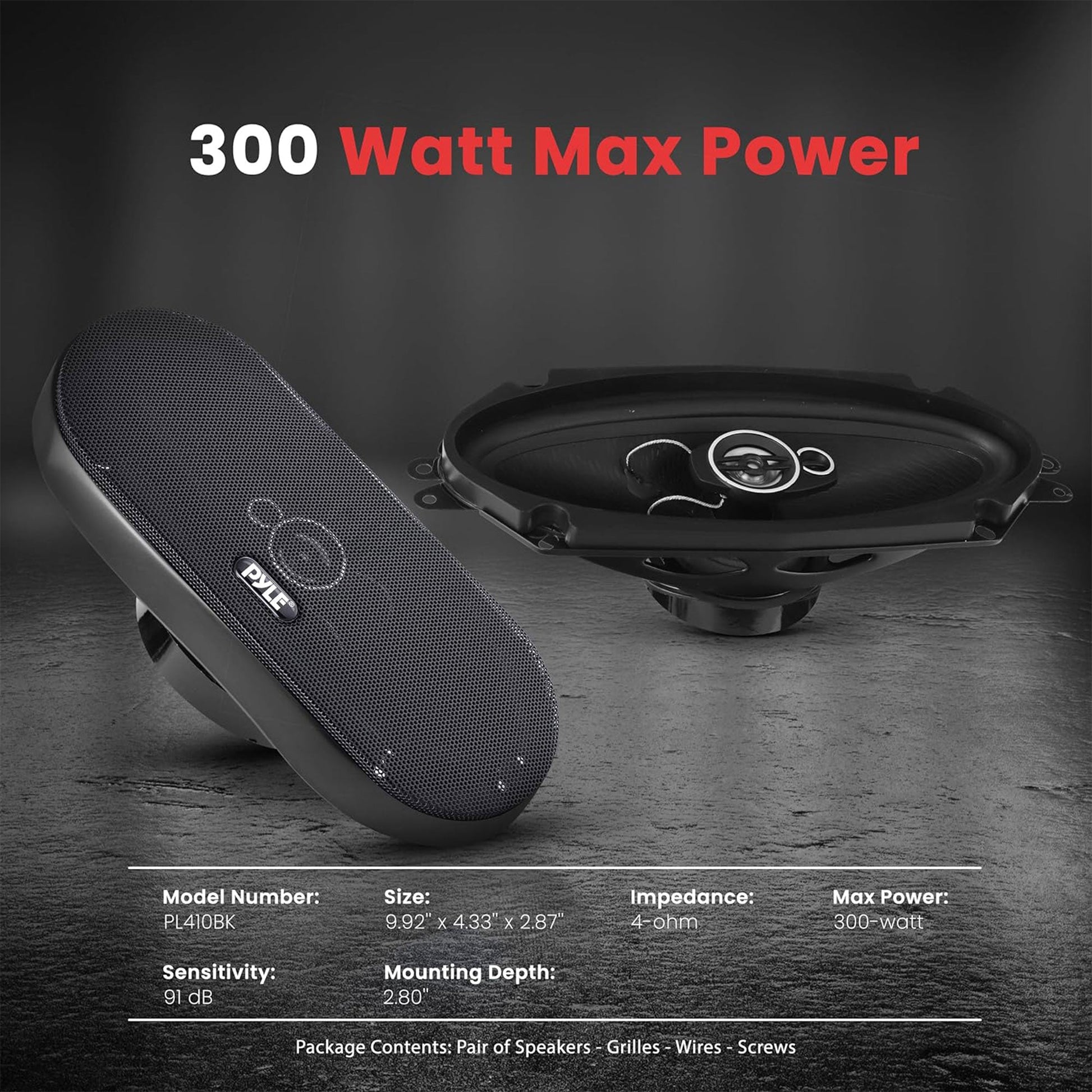 Enhance your car audio experience with the Pyle 4 Inch 3 Way Triaxial Loud Pro 300 Watt Audio Car Universal Stereo Speakers.