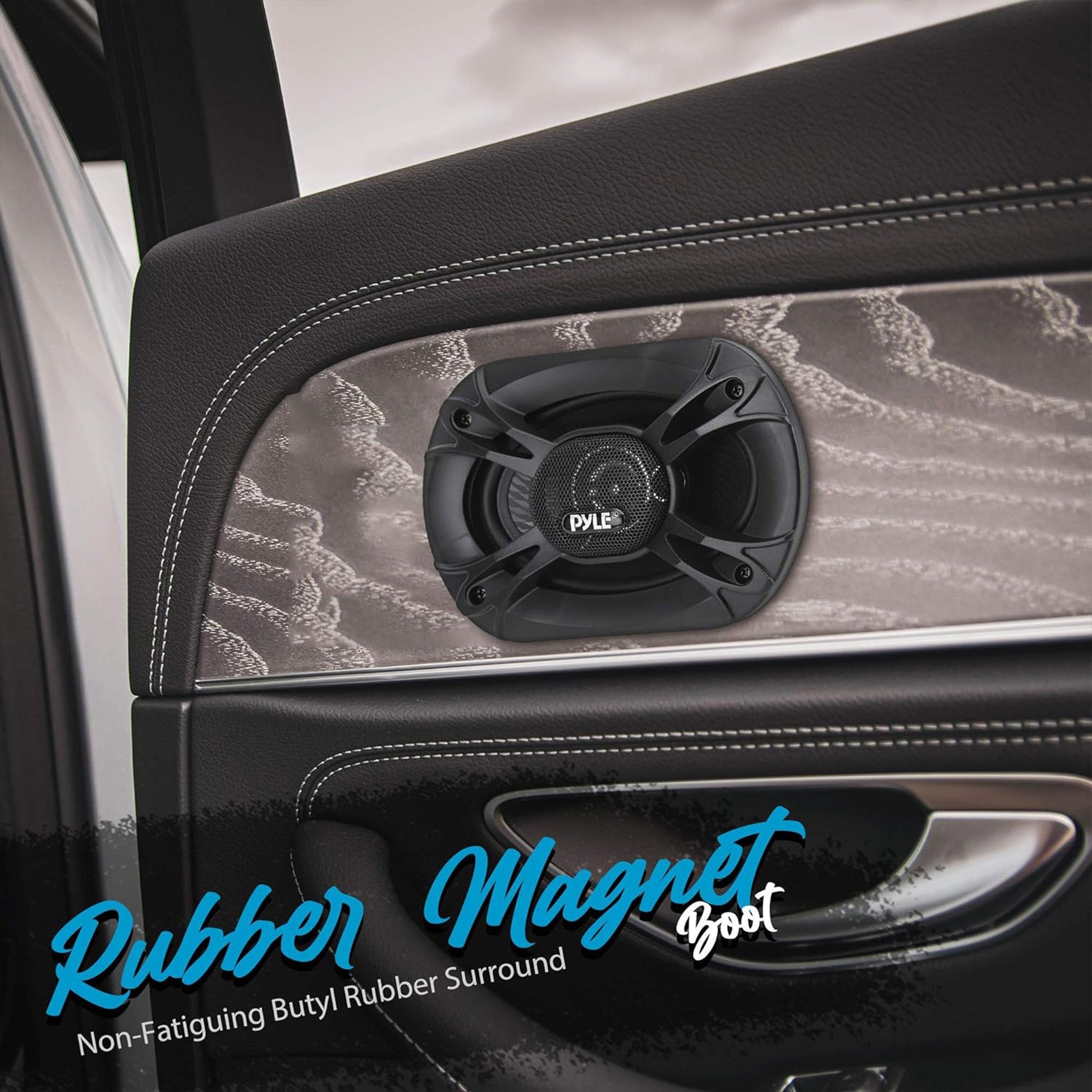 Measuring 9.21 inches in length by 6.42 inches wide by 4.02 inches tall, these sleek black speakers fit seamlessly into OEM locations and enhance your car stereo system's aesthetics. Plus, with a 50oz high-density rubber magnet boot, you can trust these speakers to deliver powerful audio performance every time you hit play. Elevate your driving experience with a premium Quadriaxial Loud Audio Sound Speaker System from Pyle.