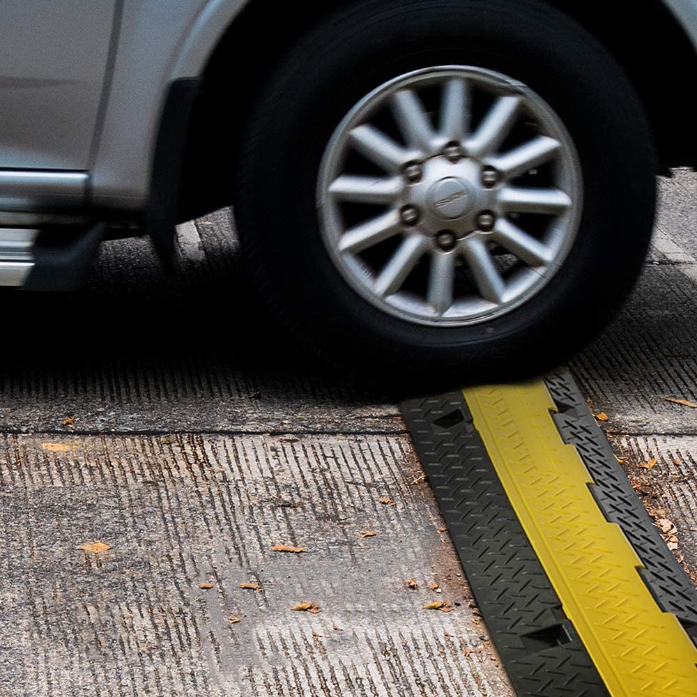 The durable, marine-grade rubber construction takes all the load. These floor cord savers can withstand up to 11,000 pounds of pressure, making them suitable for everyday vehicles to drive over top. With this pack of 2, you can take 1 inside and leave 1 outside or combine the cover set together to span 80 inches. The interlocking male-female connector system on each driveway bump allows you to hook individual pieces together reliably.