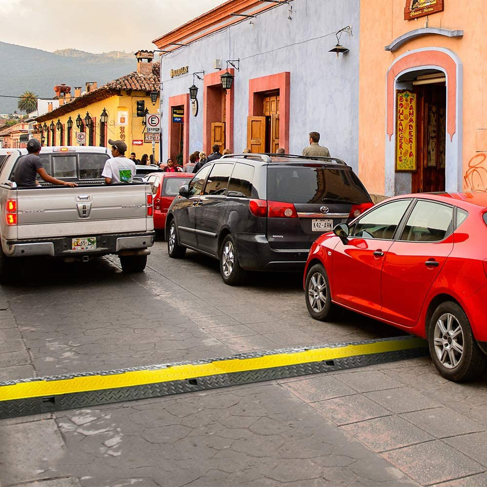 - Textured surface designed to be non-slip to provide cars tires with a solid grip and to ensure human security when crossing over