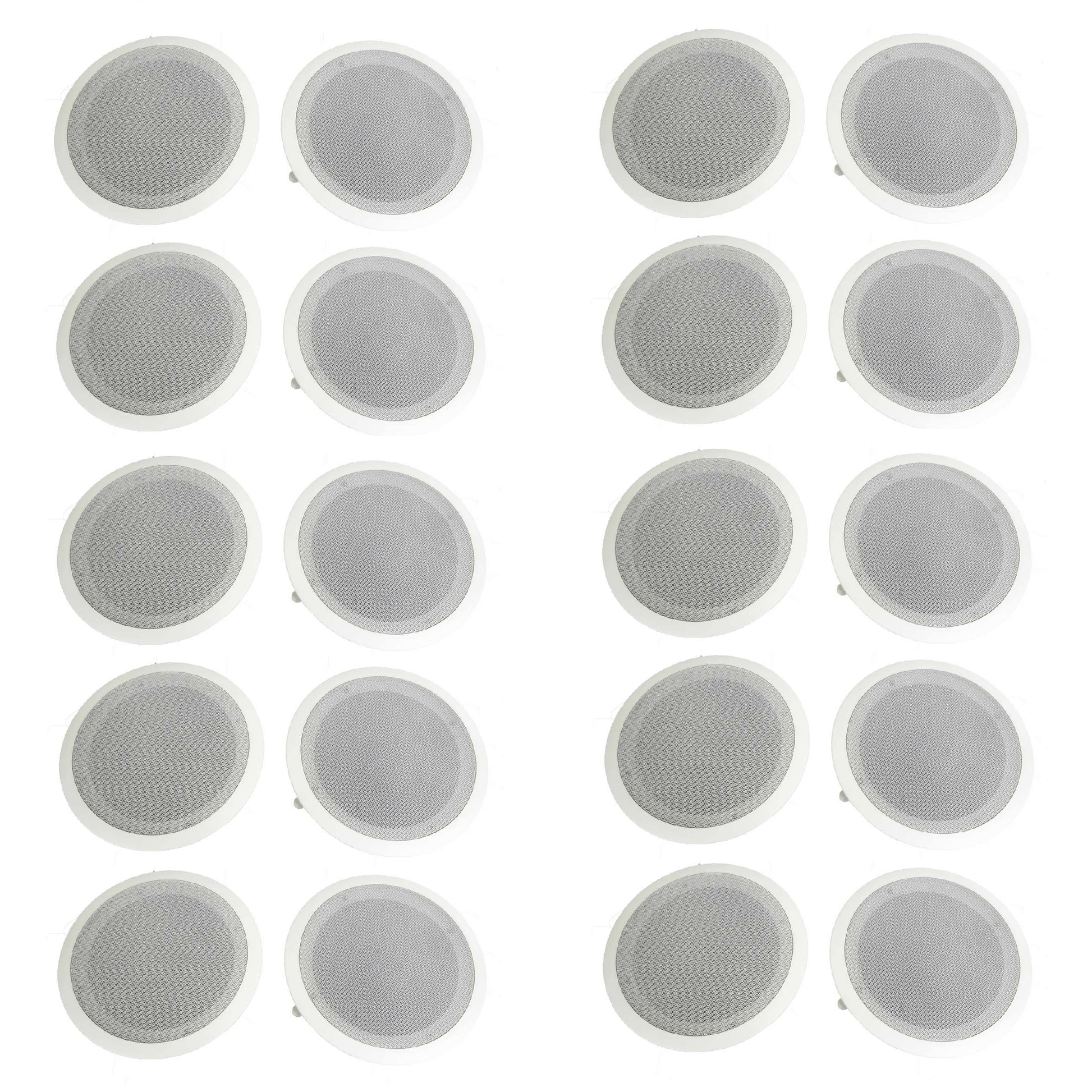 The 10-Pack of Pyle PDIC speaker systems deliver stereo sound to any room in your home or office without cluttering floor space. This pair of 8'' speakers can be used for in wall and in ceiling applications as they mount flush for a clean look. Perfect for custom installations, the PDIC series speakers feature polymer dome tweeters, impressive power handling capability, high temperature voice coils and high efficiency response rates – all to produce more full and rich sound. Convenient speaker terminals allow for quick and hassle free speaker wire connection. System includes cut out template for easy installation. Achieve wide ranged sound performance and add audio to any room with the PDIC Speaker Systems. Sold as pair.(10-Pack)
