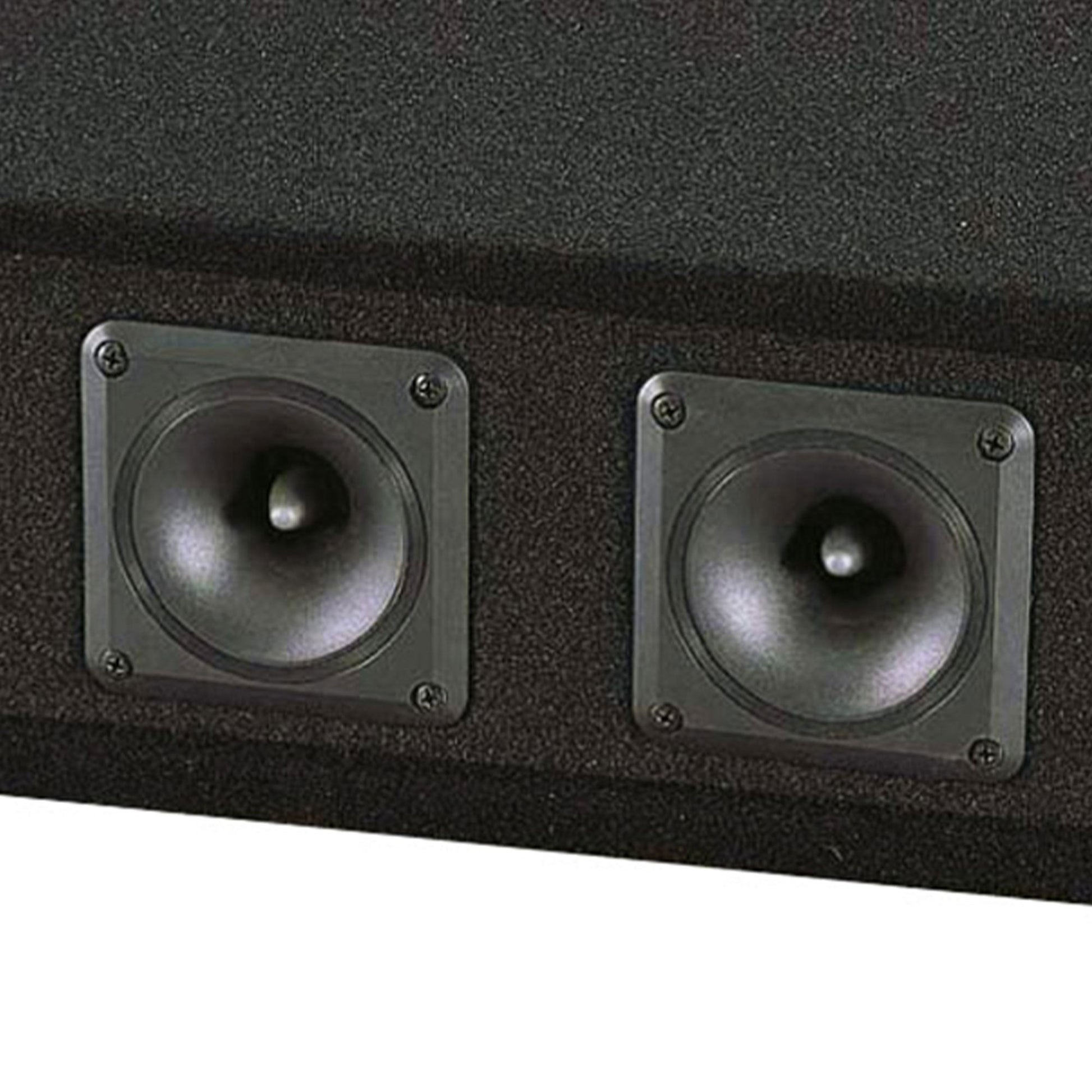 Your full-range sound will be complete when you add this DJ speaker enclosure to your mix of sound gear. This portable party speaker is constructed of MDF and covered in a black carpeting to make for durable construction and stealthy appearance.