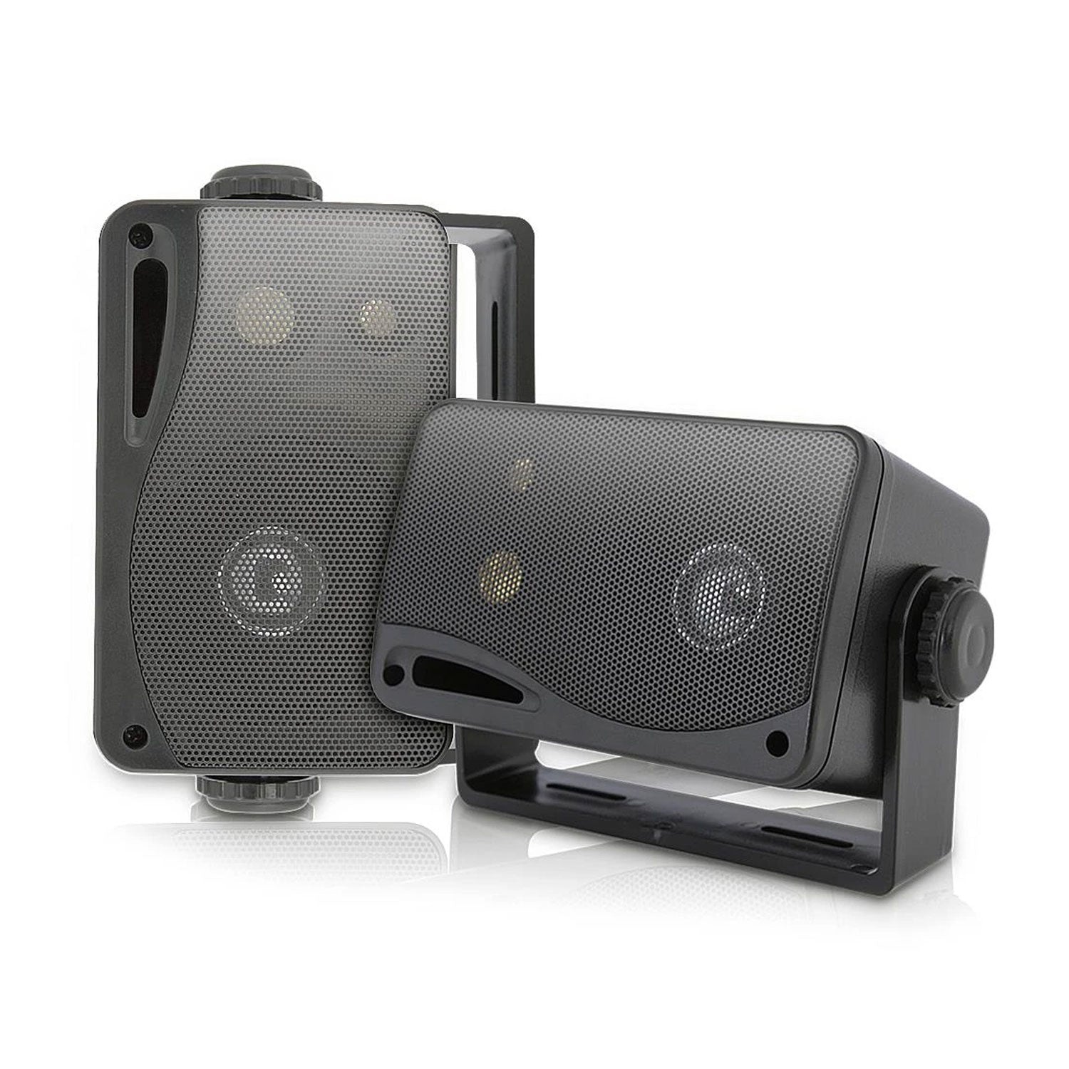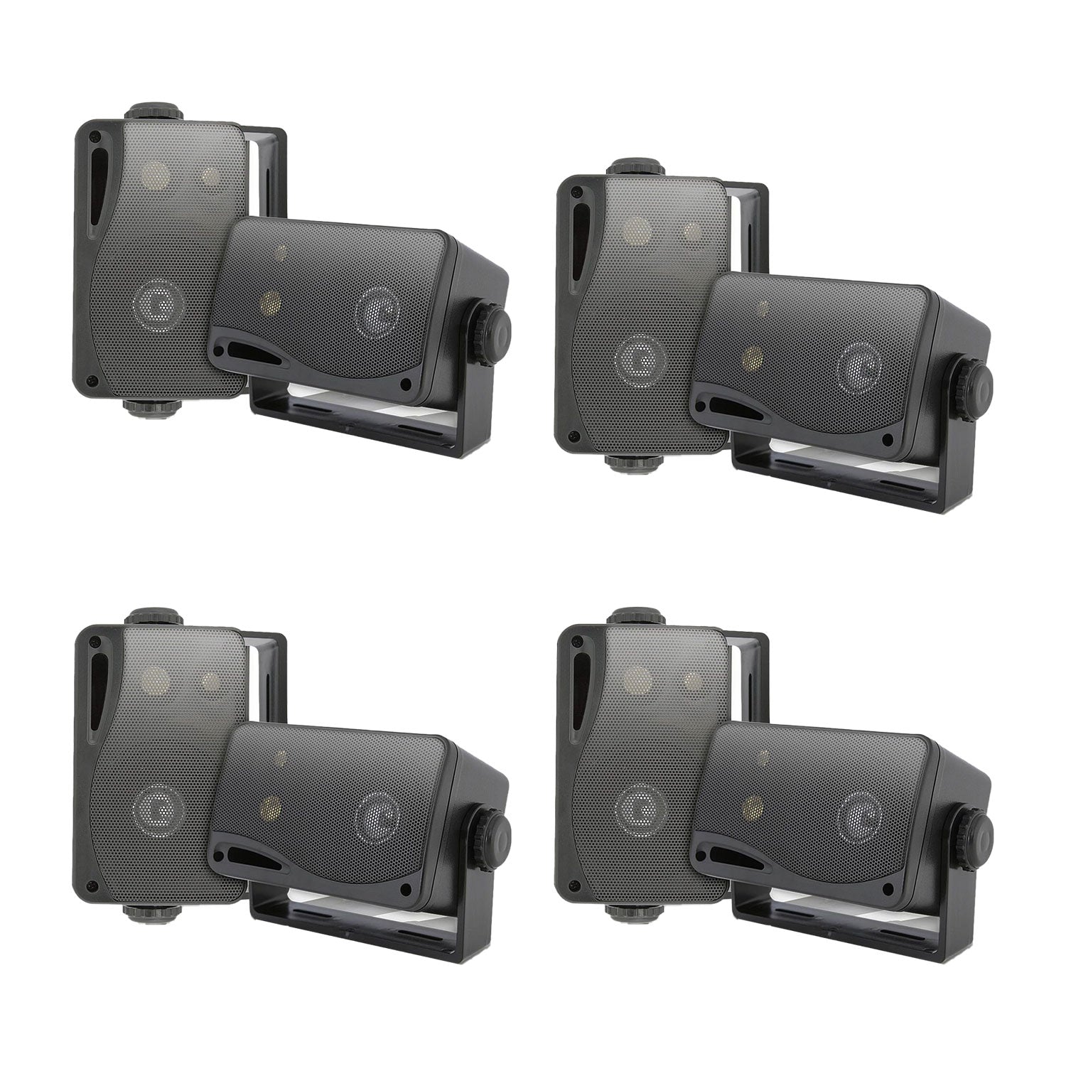 Pyle PLMR24B 3.5 Inch 3 Way Weatherproof Marine Audio Speakers, Black (4 Pair)