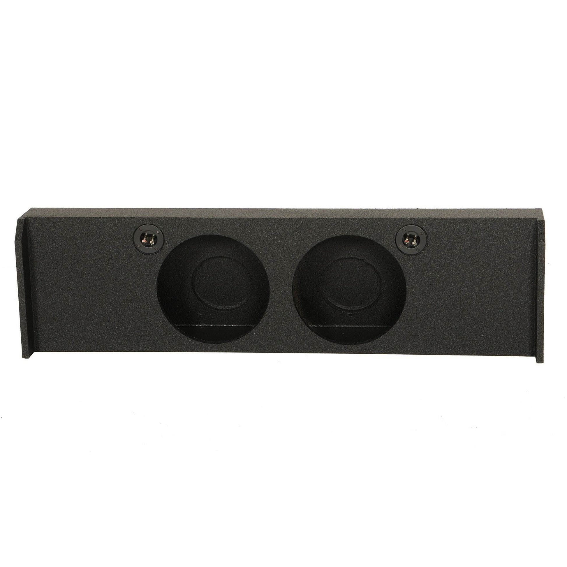This subwoofer enclosure features 2 openings for 2 subwoofers. A mounting depth 5 inches gives you added flexibility and the enclosure is finished with durable bed liner.