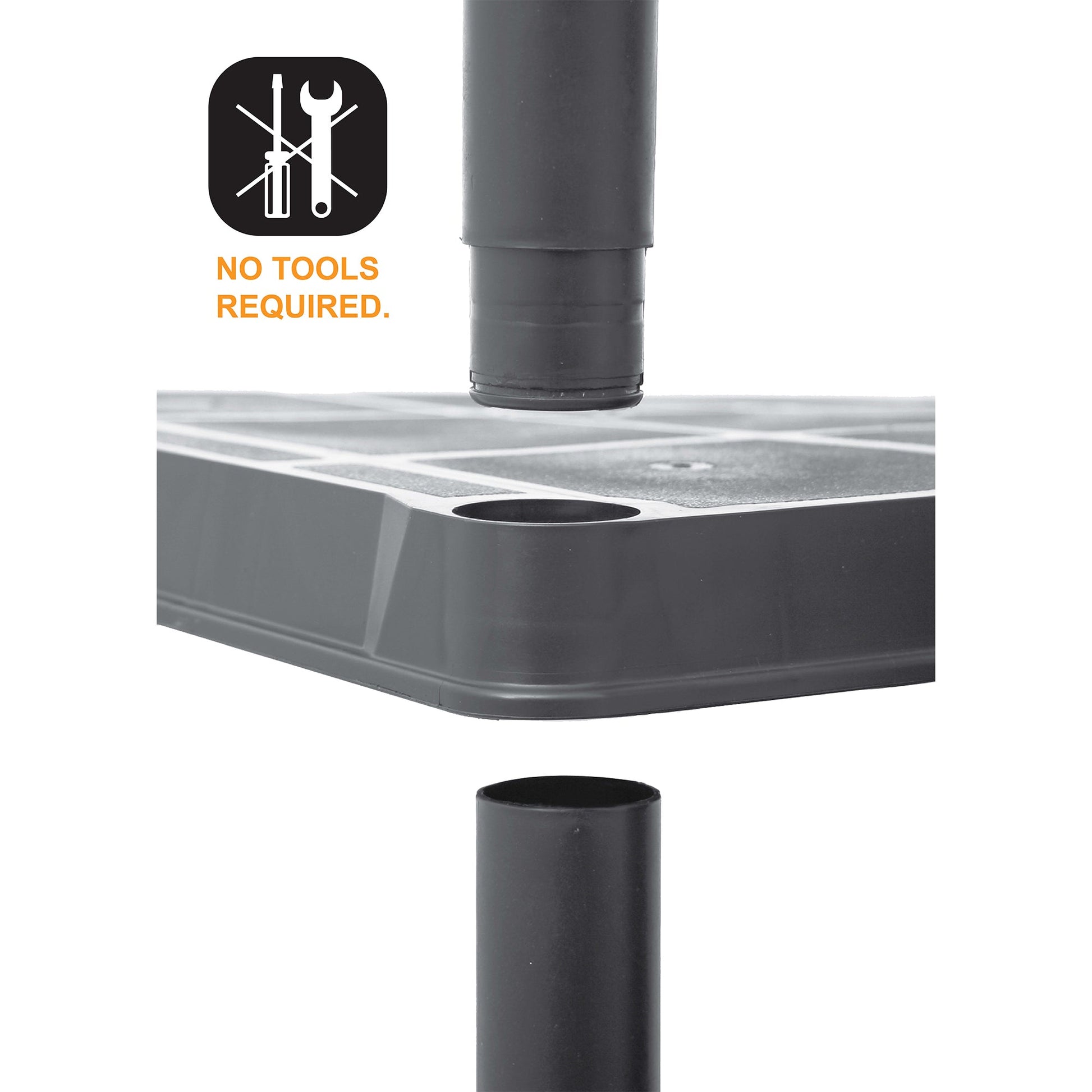This durable plastic shelving unit consists can be placed in any room to provide additional storage spaces and make the most of your living space. Featuring a durable plastic construction and raised feet to prevent water damage, this shelving unit is ideal for organizing your basement, closet, or shed space.