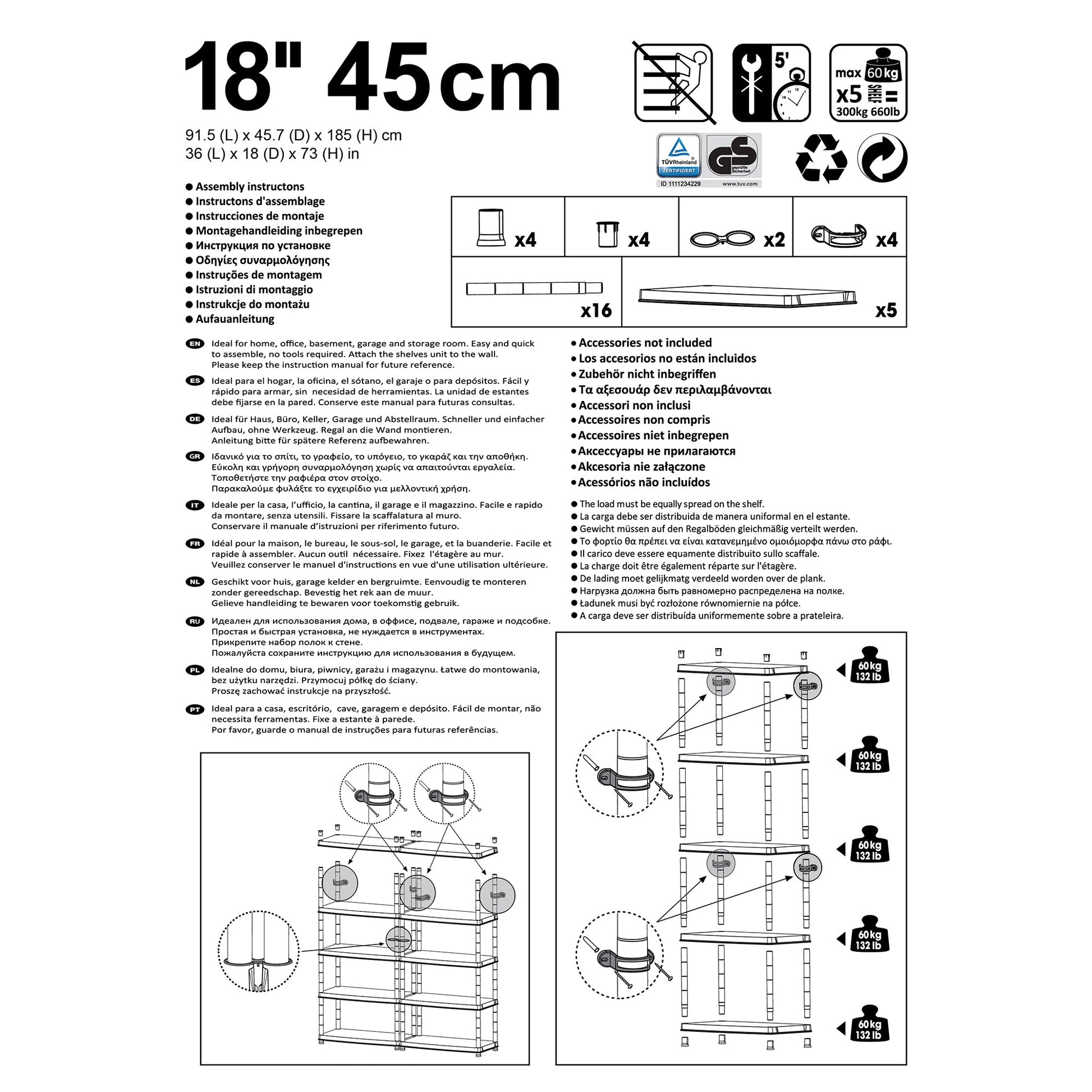 Take the clutter out of your home or garage and spark more joy in your living space with the Ram Quality Products Deluxe 18-Inch 5-Tier Plastic Garage Storage Shelves.