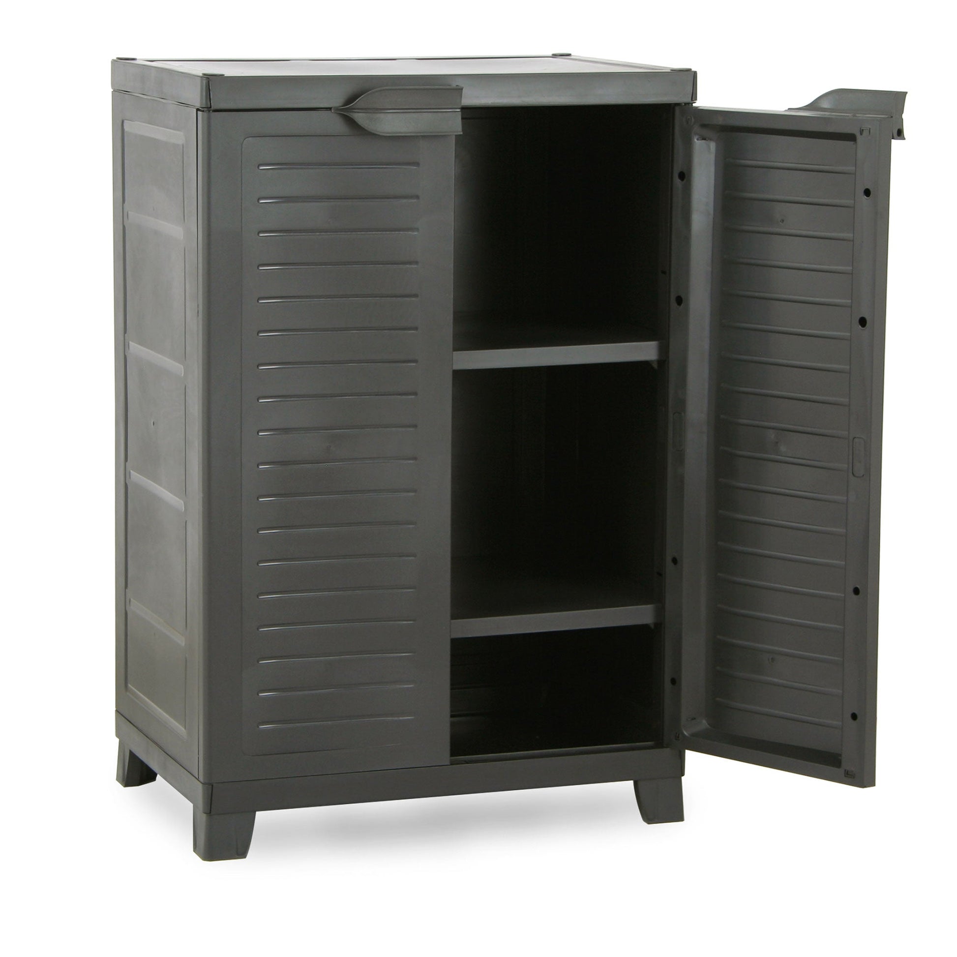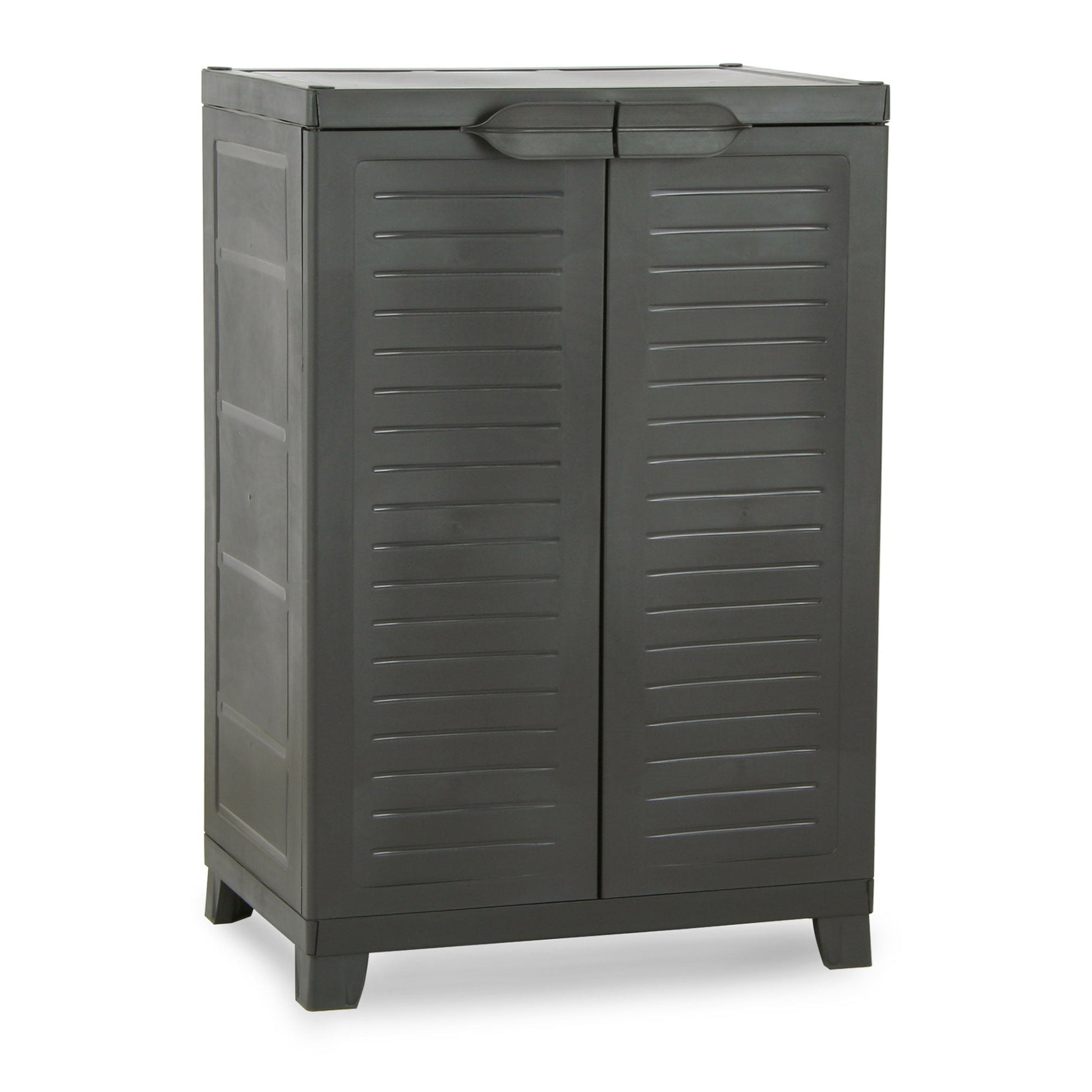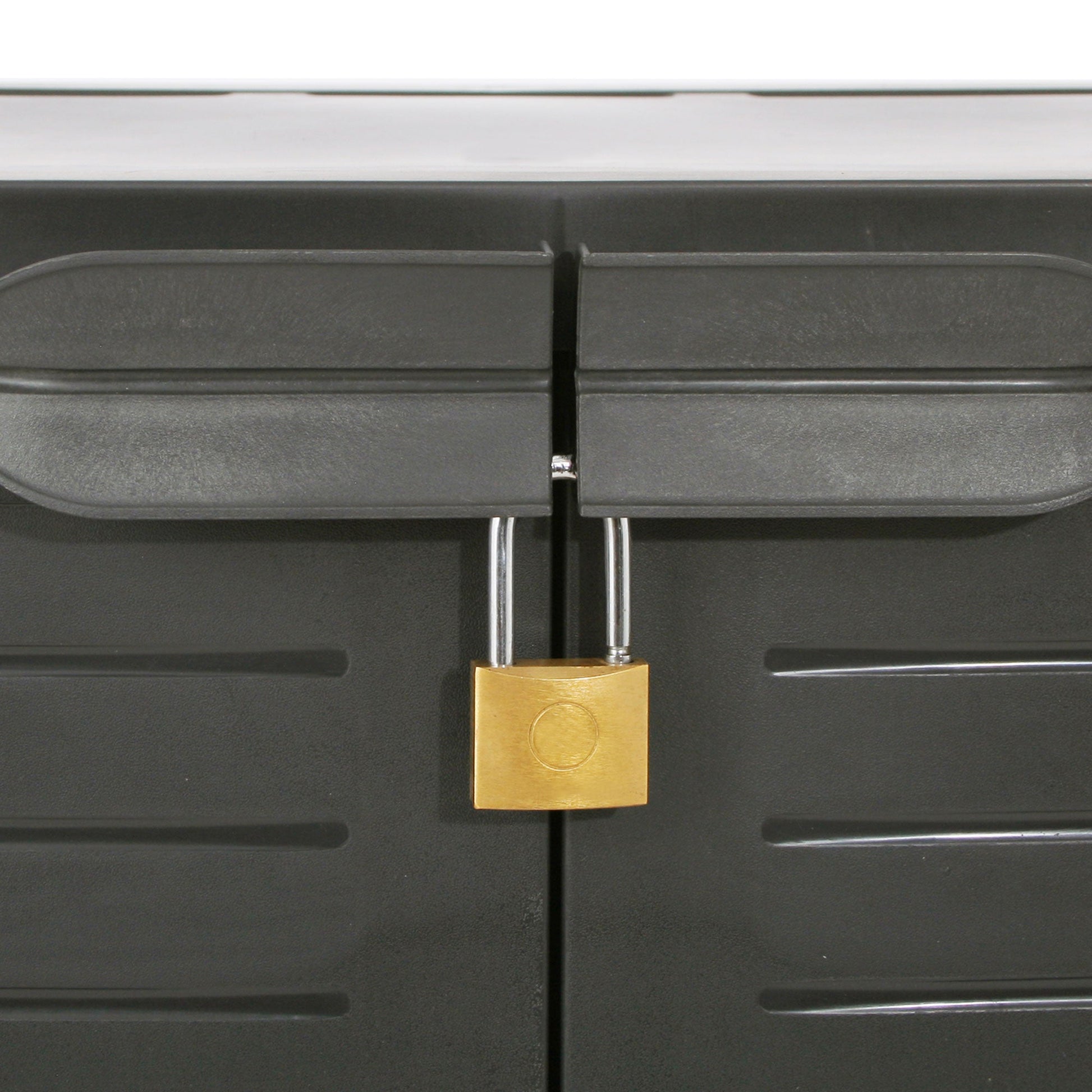 Rest assured, while easily accessible, this storage unit's doors are lockable (lock not included) in order to keep all of your items secure. Utilize this unit in your basement, shed, bathroom, playroom, and more to easily keep your home in order. An easy, no-tool assembly assures you will be storing your personal items in no time.