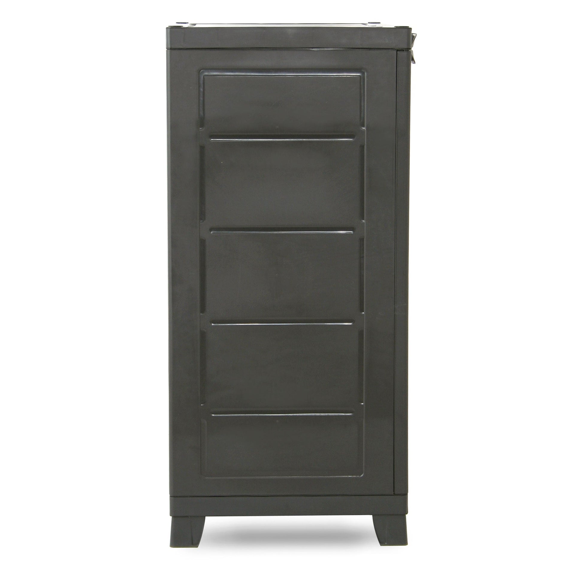 The heavy-duty plastic shelving allows for 44 pounds per shelf and helps you stay organized and clutter-free. Organize efficiently with the RAM Quality Products ELITE Utility Storage Cabinet.