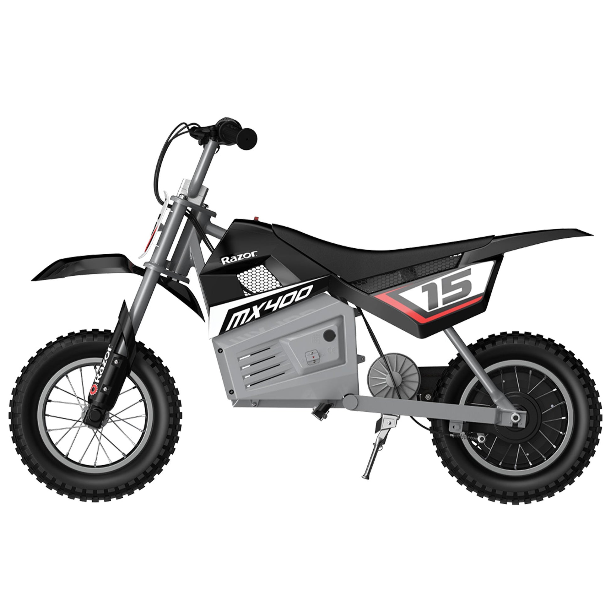 Your kid isn't afraid of a little dirt. The Razor MX350 and MX400 Dirt Bikes are ideal for kids and teens ages 13 years and older who want to enjoy a revved-up version of the off-road dirt bike experience.