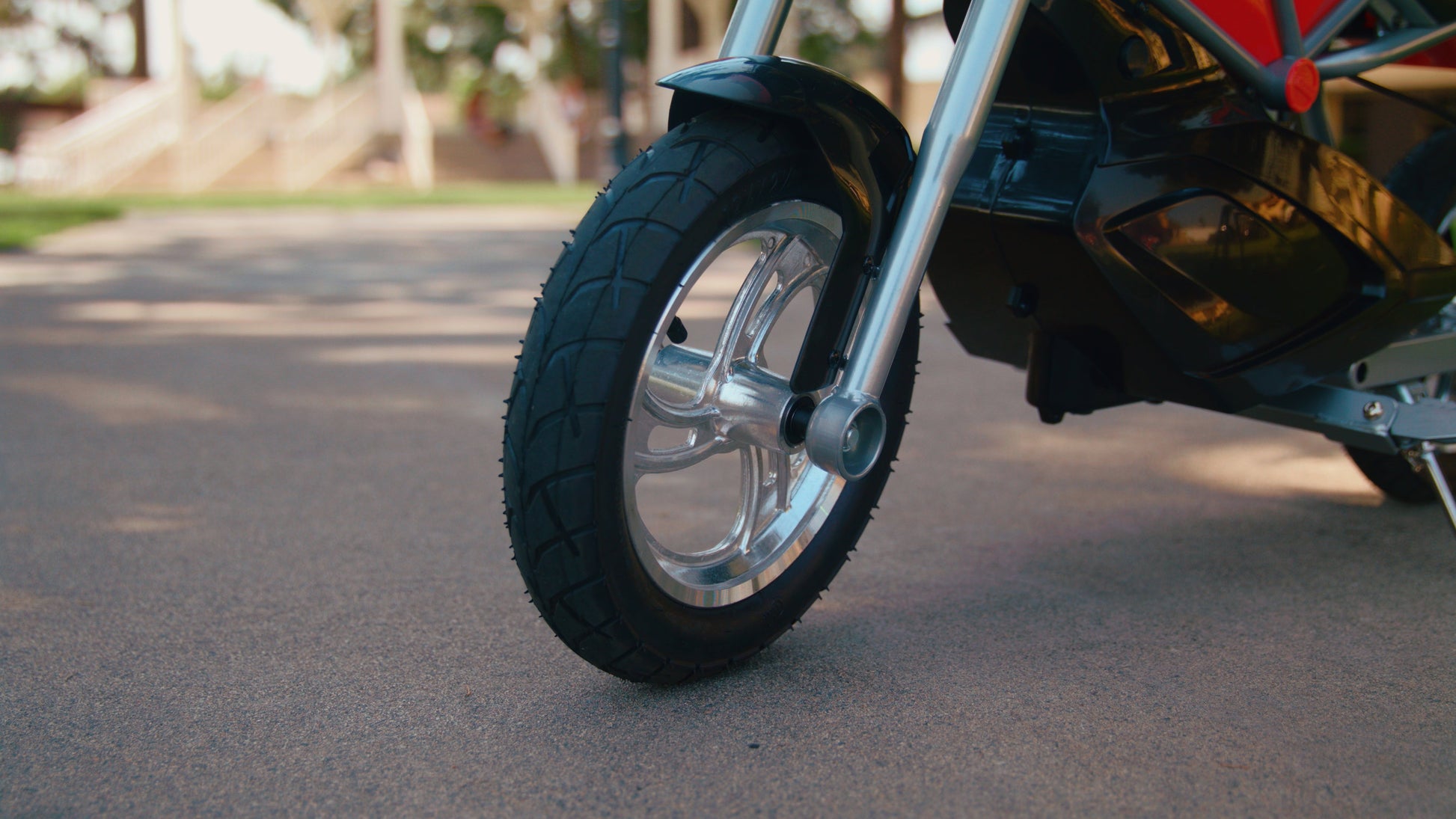 - Stop on a dime with a hand-operated rear disc brake, supported by pneumatic tires and custom 12-inch (305-mm), 3-spoke mag wheels