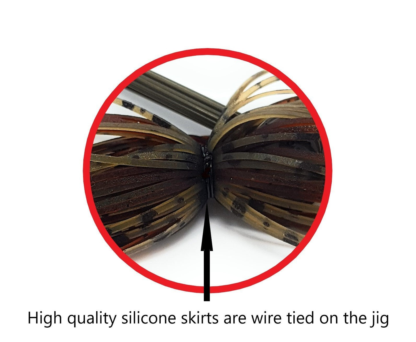- LIFELIKE SILICONE SKIRT ACTION: The silicone skirt on our jigs replicates the lifelike movement of real prey in the water, enticing bass lurking in hard-to-reach spots