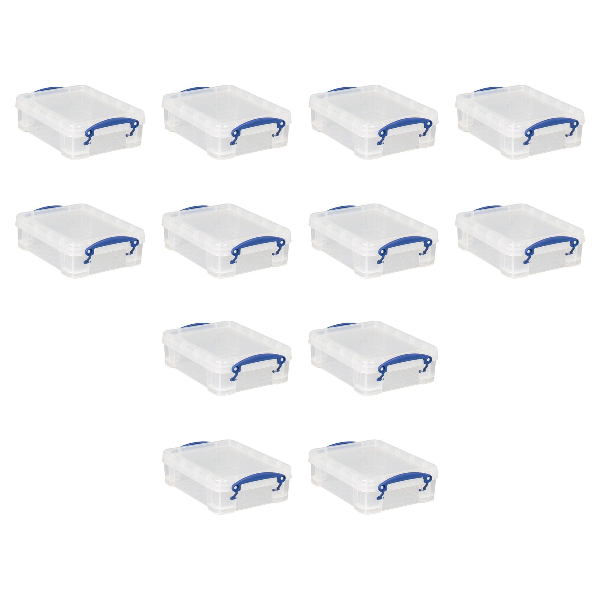 Be a master of home storage and organization with the reliable Really Useful Box Storage Containers. This package of 12 1.75-liter bins will conveniently meet your organizing needs by providing enough room to store various items in your home or office.
