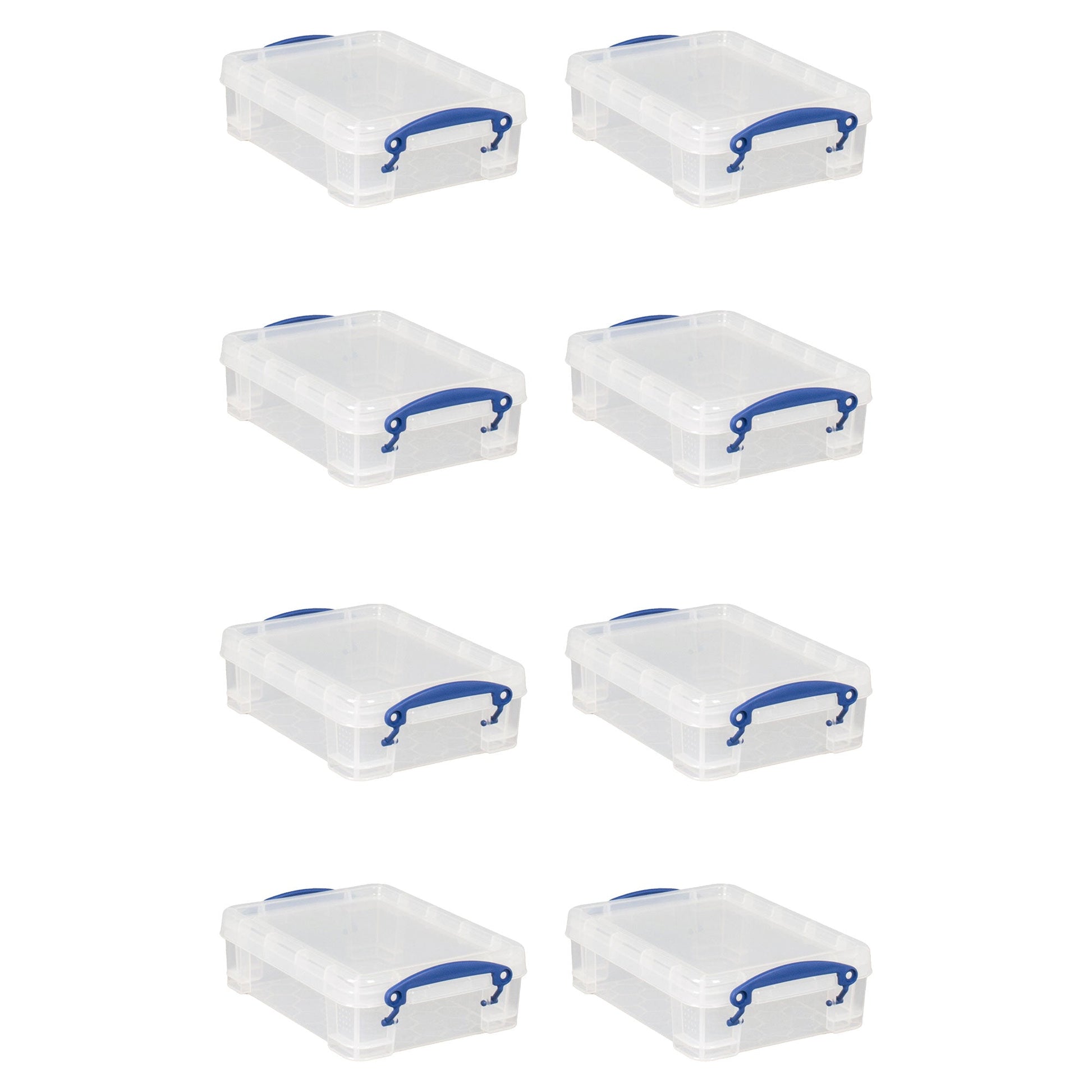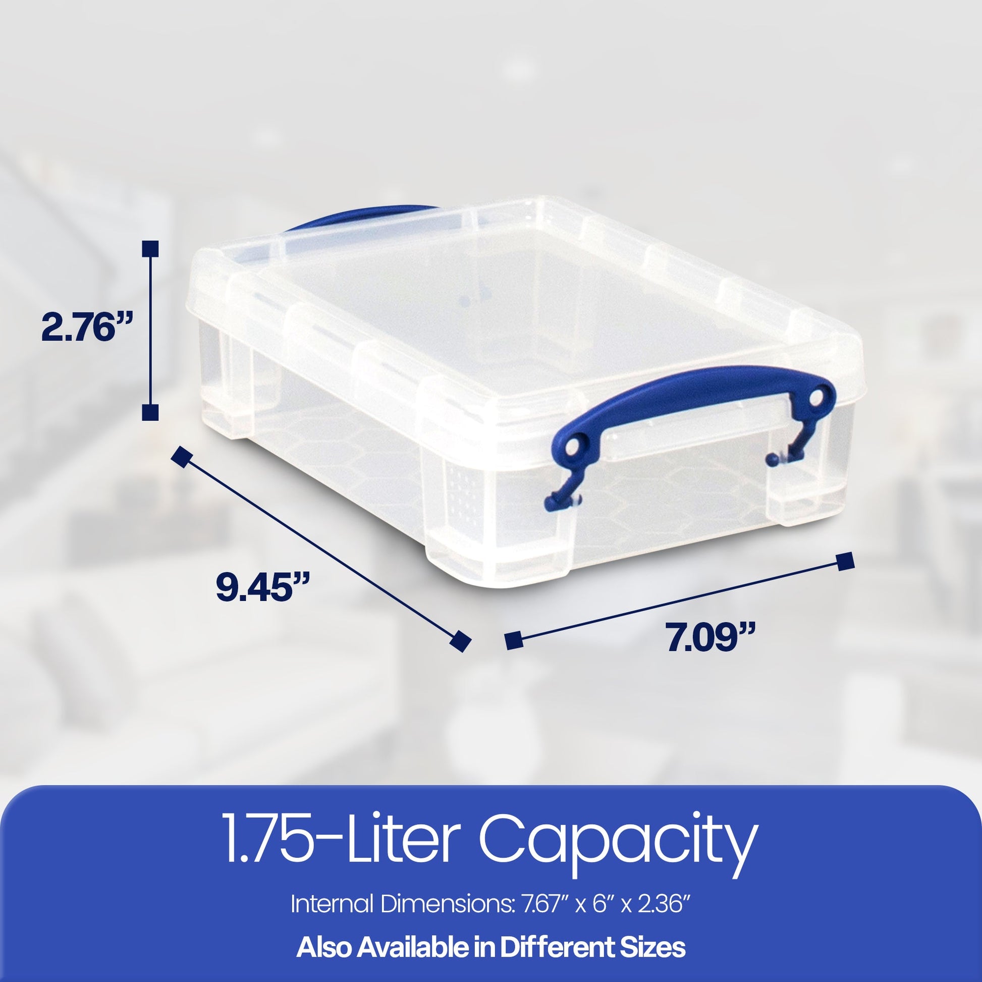 Really Useful Box 1.75L Storage Bin w/Snap Lid & Clip Lock Handle, 8 Pack, Clear