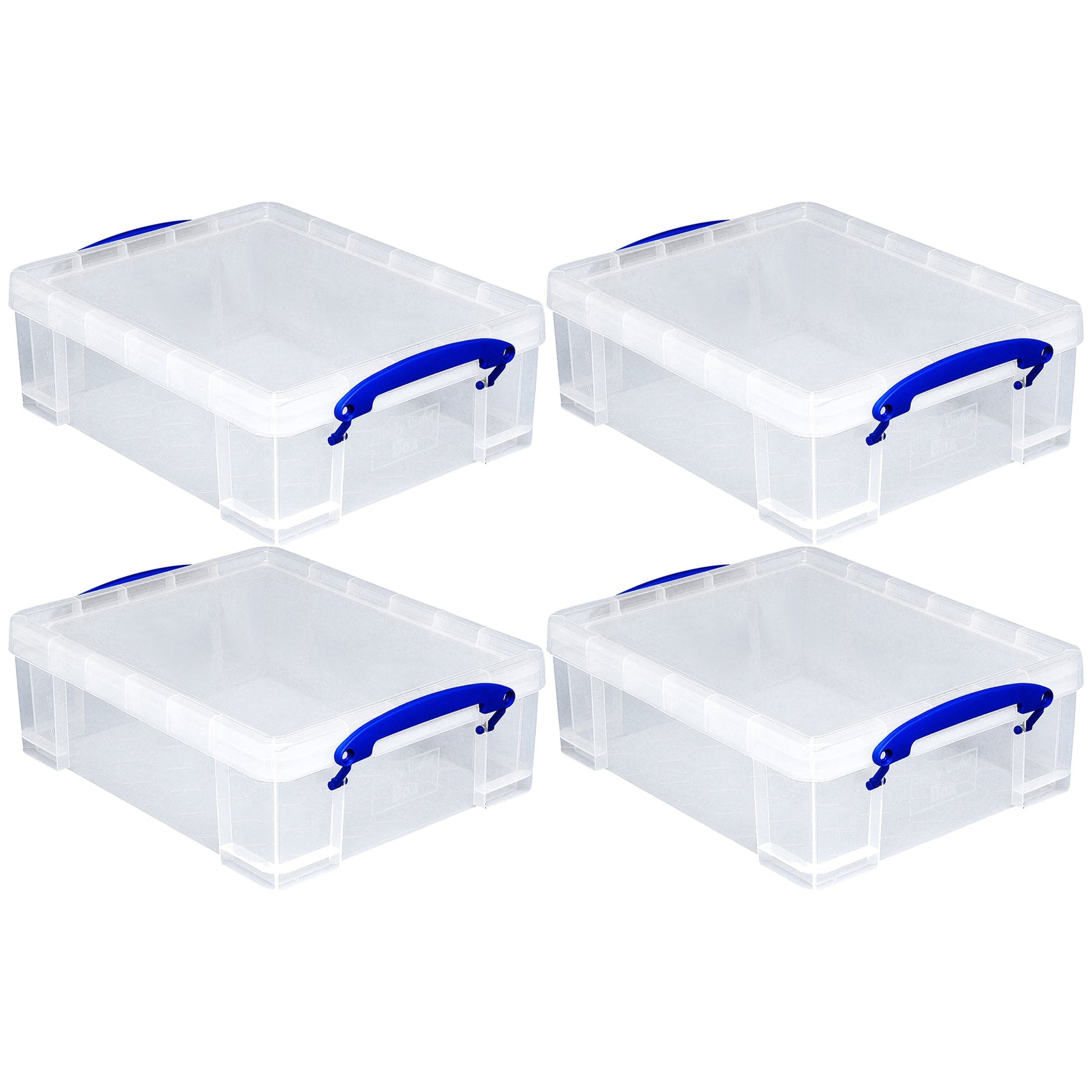 Really Useful Box 8.1L Plastic Storage Container with Clip Lock Handle (4 Pack)