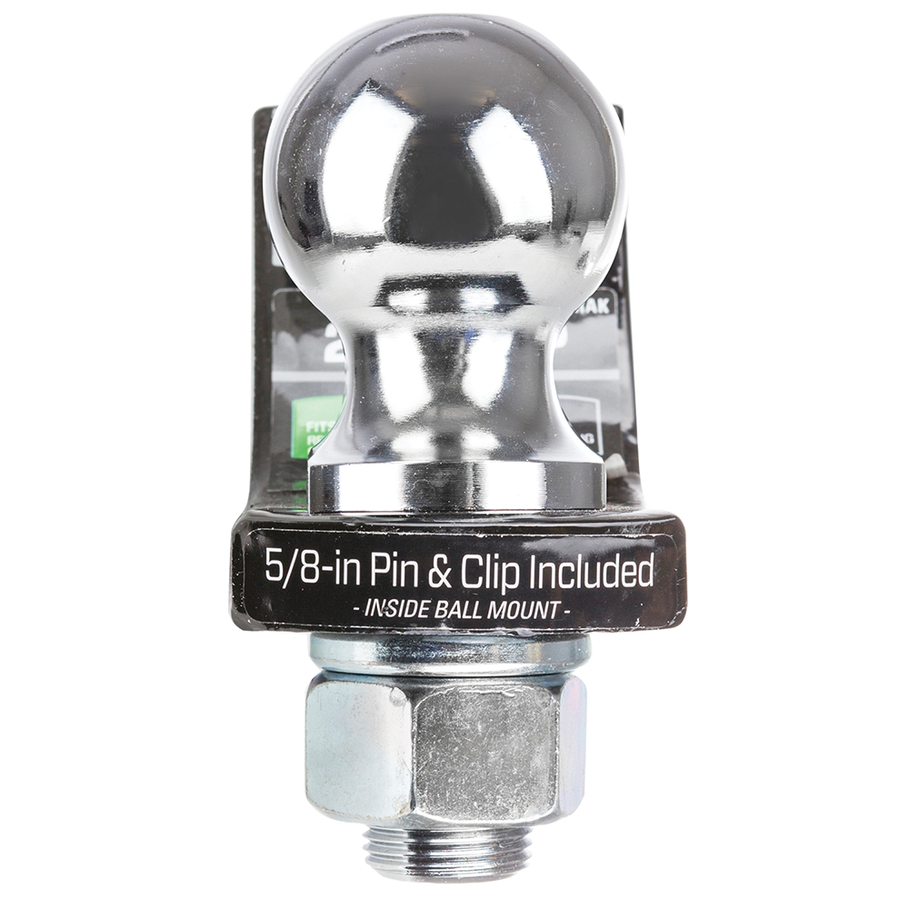 Crafted from high-quality, heavy-duty materials, this ball mount is built to last. The innovative metal shield finish adds extra durability against corrosion and rust for increased longevity. Designed for large general towing capacities up to 6,000 pounds and 600 pounds of tongue weight, this hitch ball measures 2 inches with 0.62-inch pin and clip. Tow what you need with help from Reese Towpower's Trailer Hitch Ball Mount Kit.