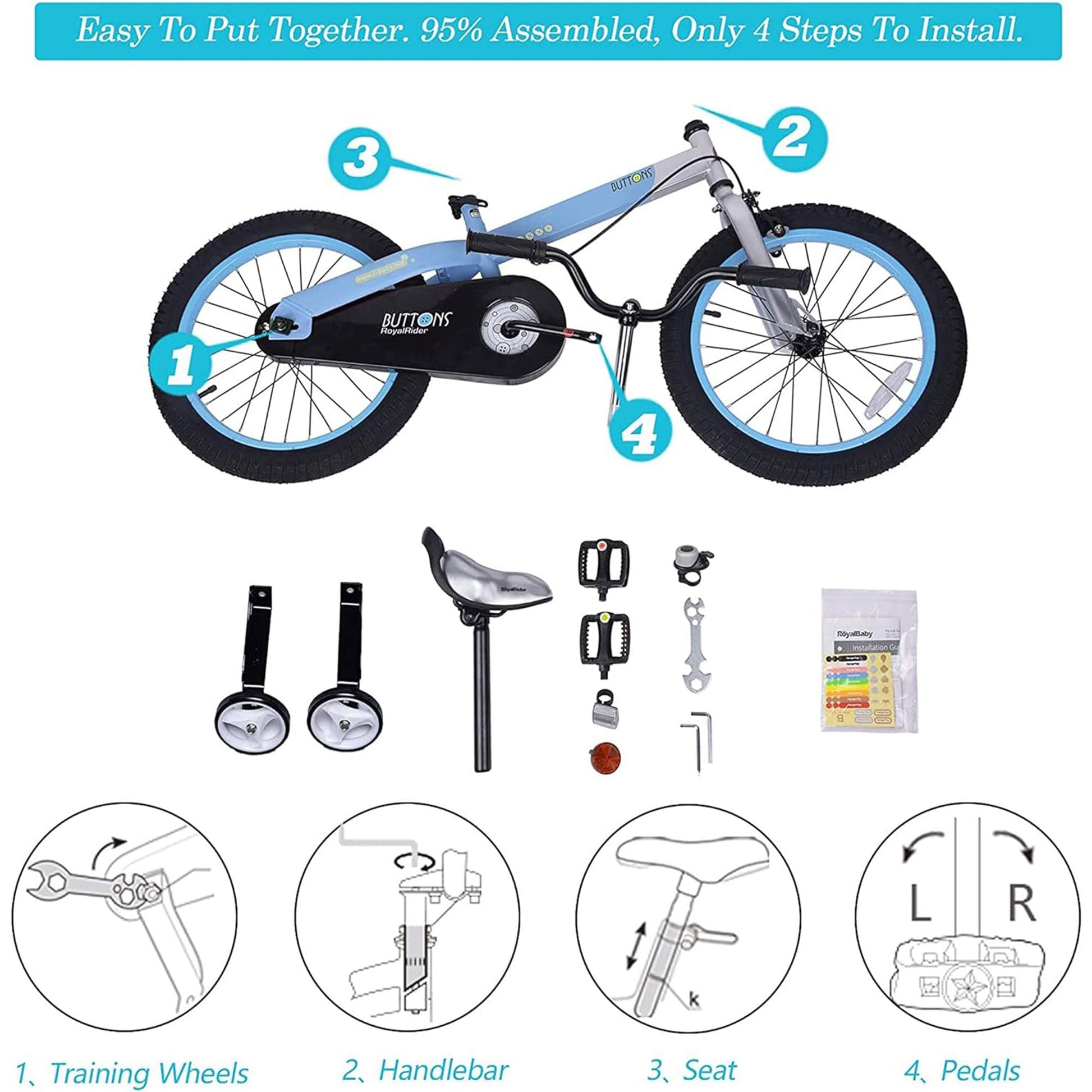 RoyalBaby Buttons 14 Inch Kids Bike with Training Wheels and Coaster Brake, Blue