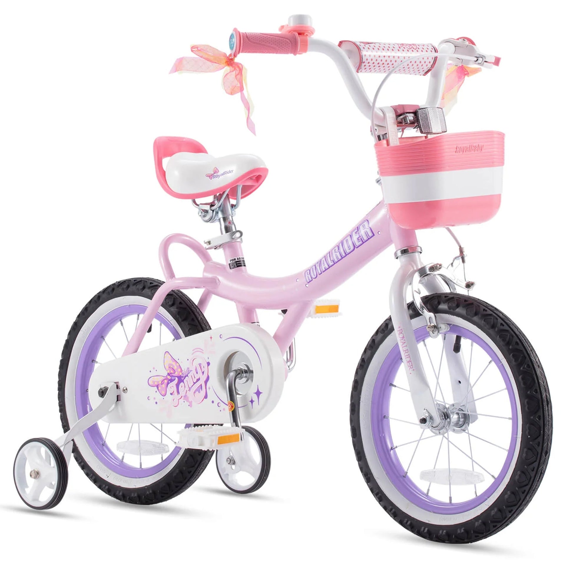RoyalBaby Jenny Princess 14" Kids Bike w/Training Wheels, Basket & Bell, Pink EL