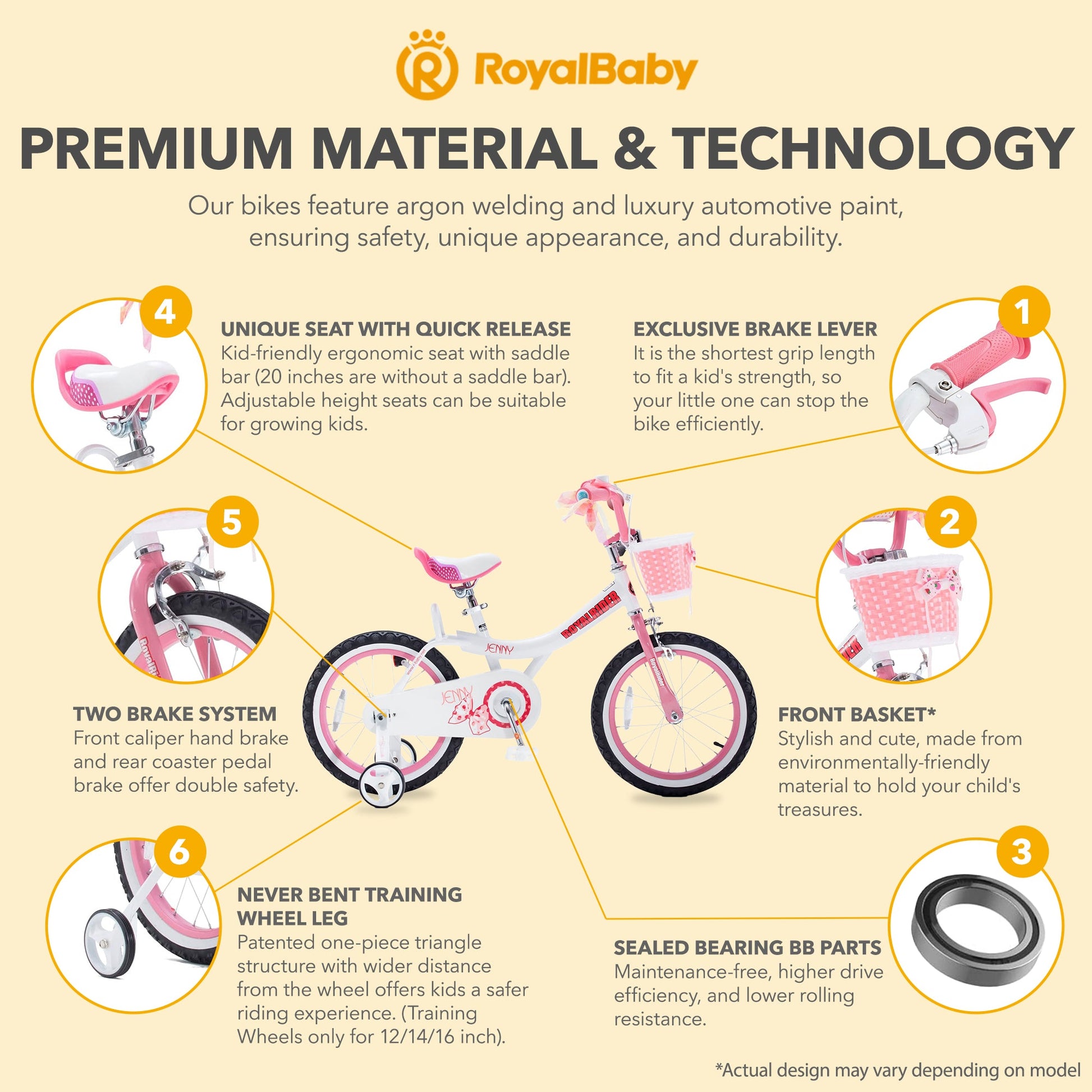 RoyalBaby Princess Girl Bike 16" w/Training Wheels & Kickstand, Jenny/White Pink