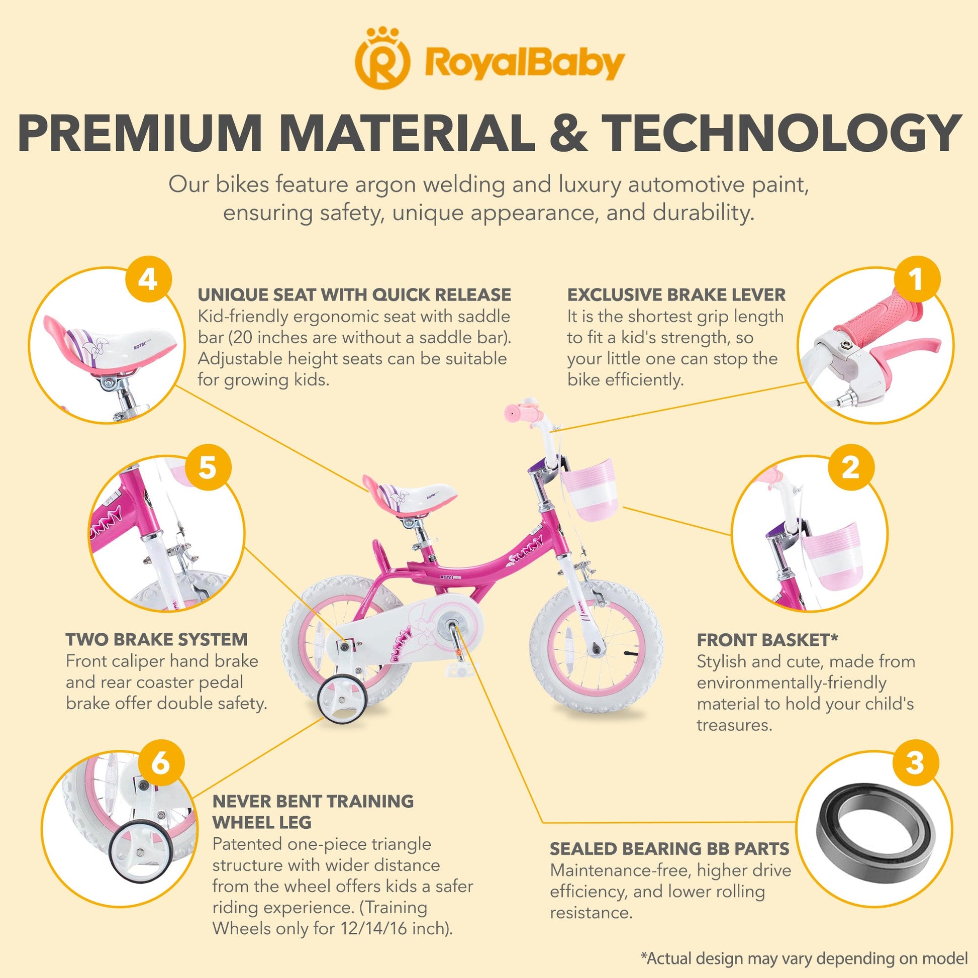 - Includes sturdy training wheels, dual brakes (pedal and hand), reflectors, and a bell to ensure visibility and safety while the enclosed chain guard prevents injuries to keep the bike running smoothly