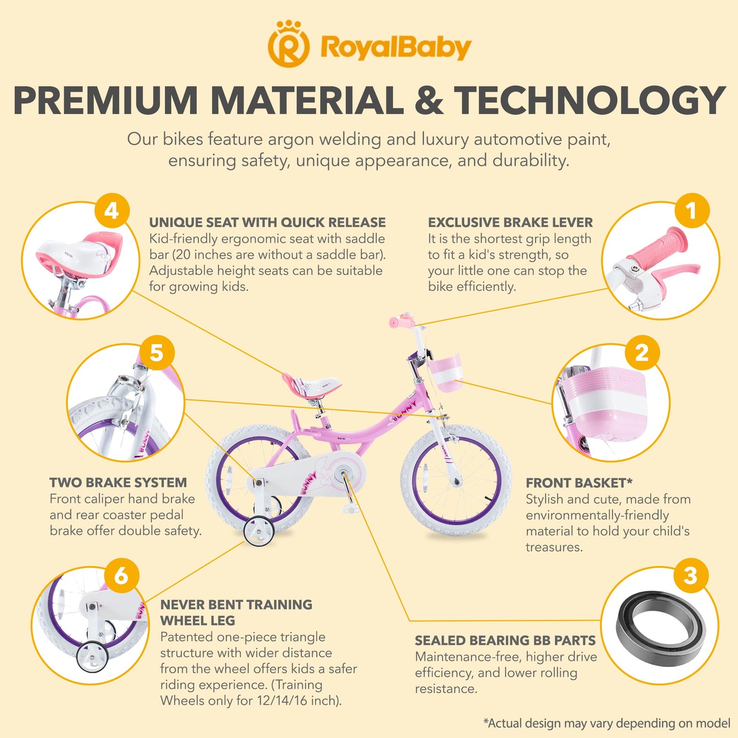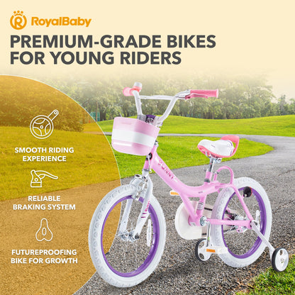 RoyalBaby Princess Girl Kids Bike 14 Inch w/ Training Wheels, Bunny/Pink Purple