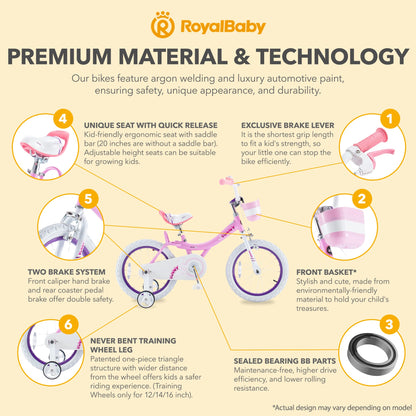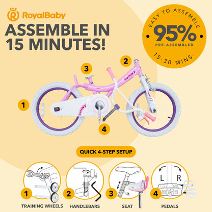 Assembling the bike is a breeze with the included tool kit and easy-to-follow instructions. The durable construction ensures it will withstand the test of time and active play, making it a reliable choice for your child's first bicycle. The RoyalBaby Princess Girl Bicycle is more than just a bike; it's a gateway to adventure, independence, and joy. Watch your child's face light up with excitement and pride as they pedal their way to new adventures.