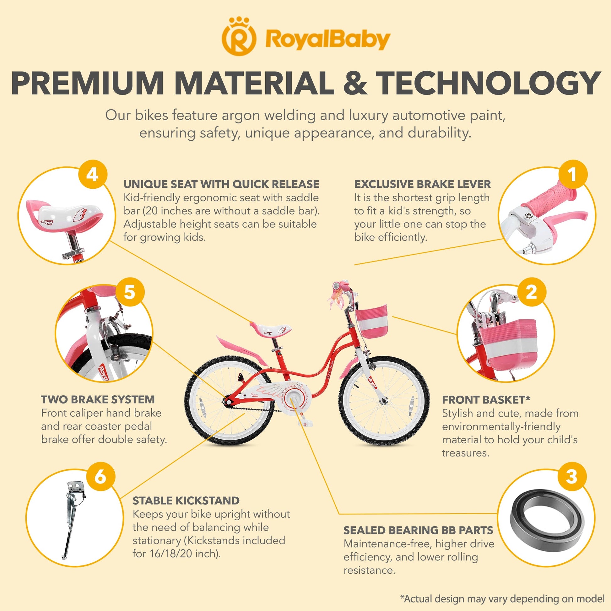 Allow your little one to experience the joy of riding with the RoyalBaby Princess Girl Bicycle, the perfect companion for young adventures. This beautifully designed bike is sure to catch everyone's eye and make your little one feel like royalty on wheels.