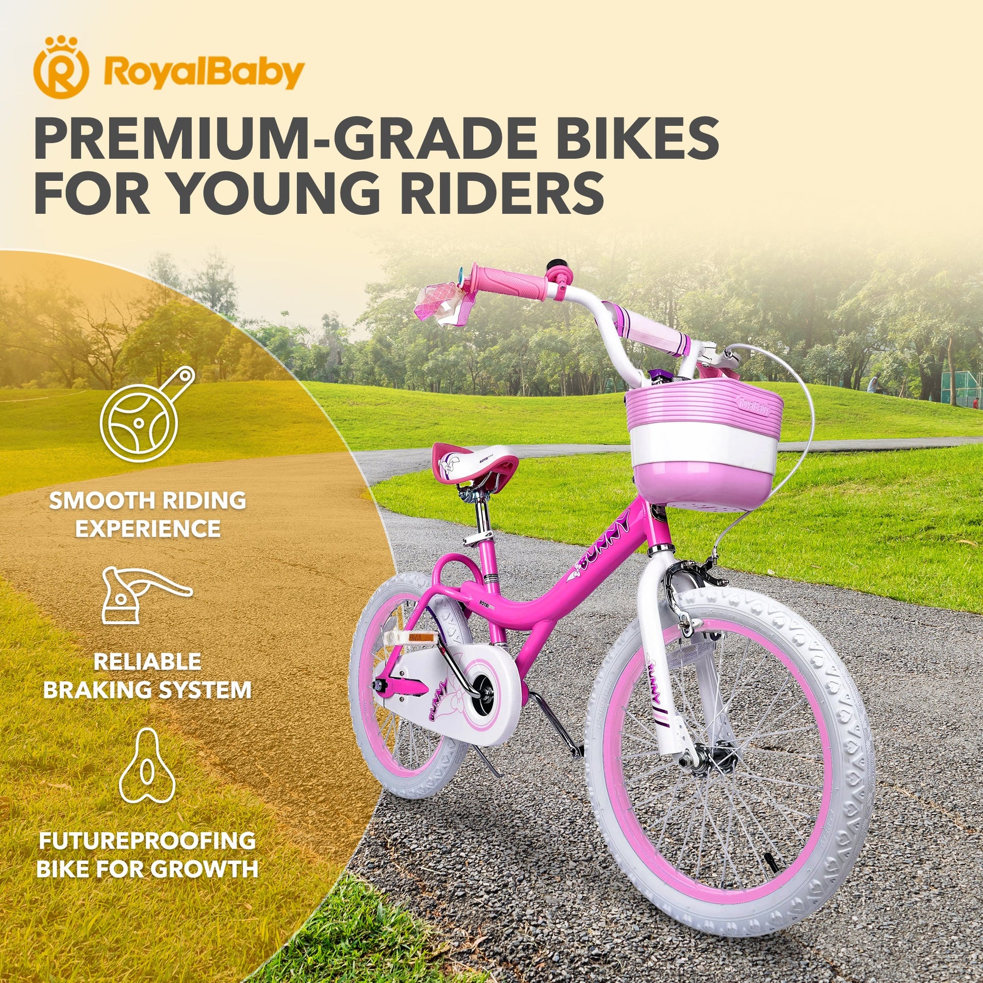 RoyalBaby Princess Girl Kids Outdoor Bicycle 18" with Kickstand, Bunny/Fuchsia