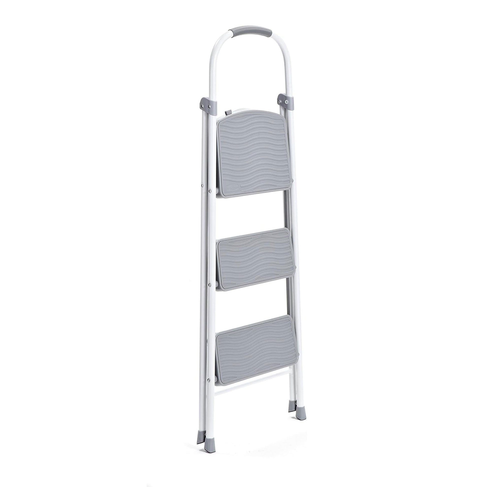 Step up with a stool that doesn't take up a lot of space around your home. With this Rubbermaid 3-Step Folding Ladder Steel Step Stool, you'll always have a lightweight and dependable step ladder on hand to reach up to that top shelf or cupboard.