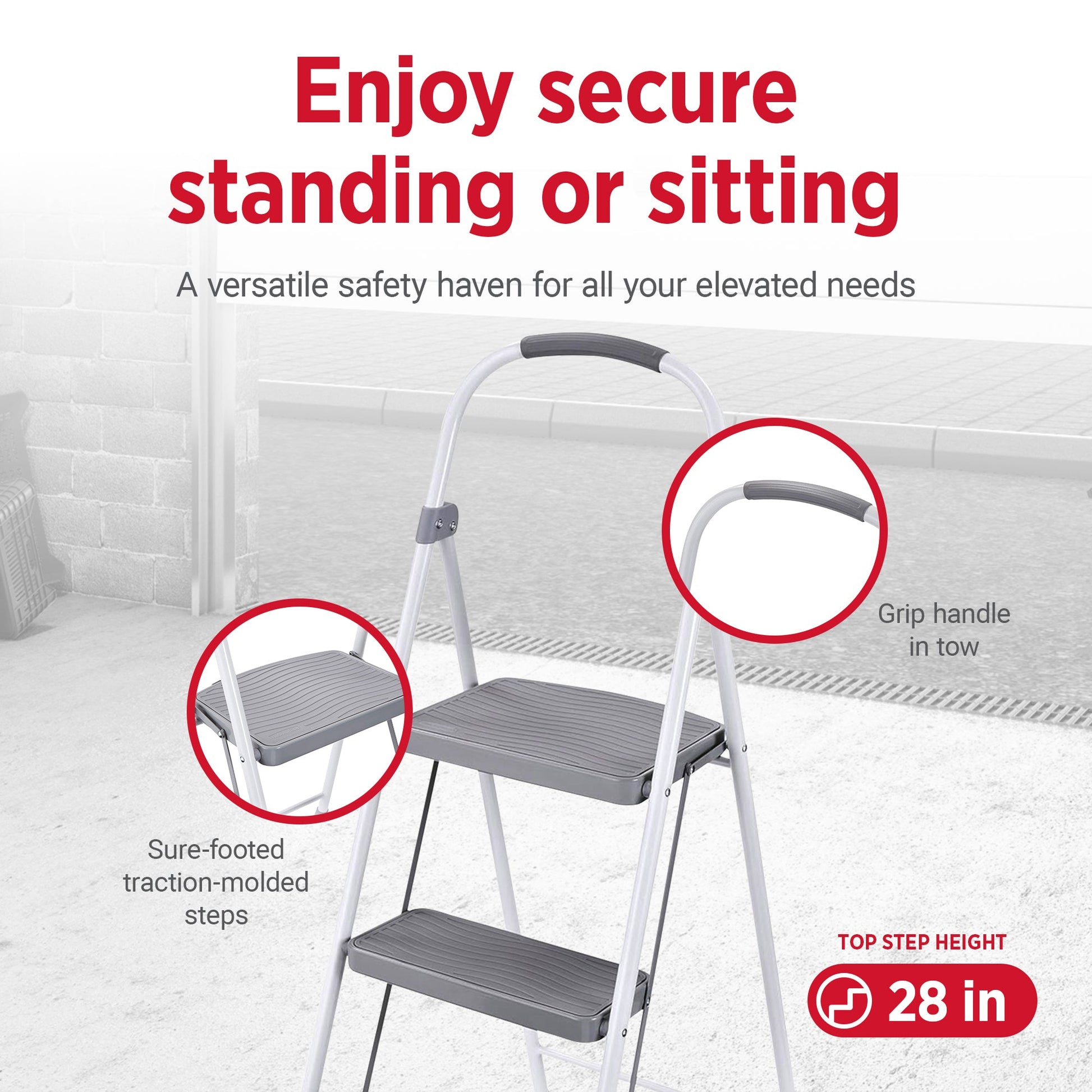 - With a top step height of 28 inches, conquering heights becomes a breeze