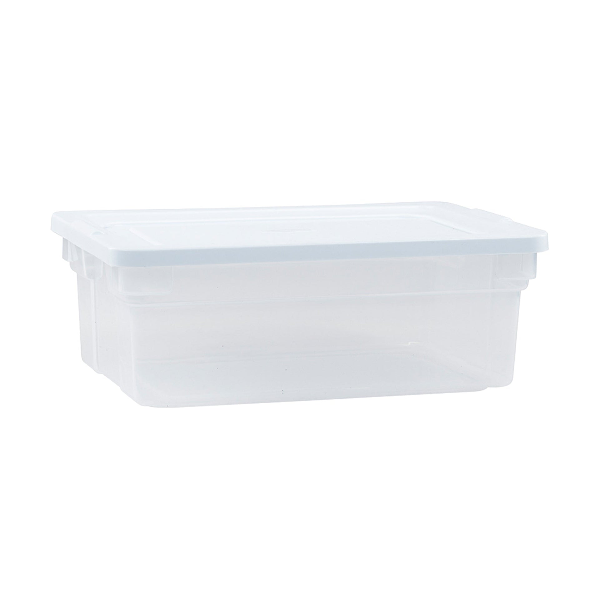 - From kitchen, pantry, and bedroom, these clear totes with white lid are good for organizing any are of your home for a clean, sleek look