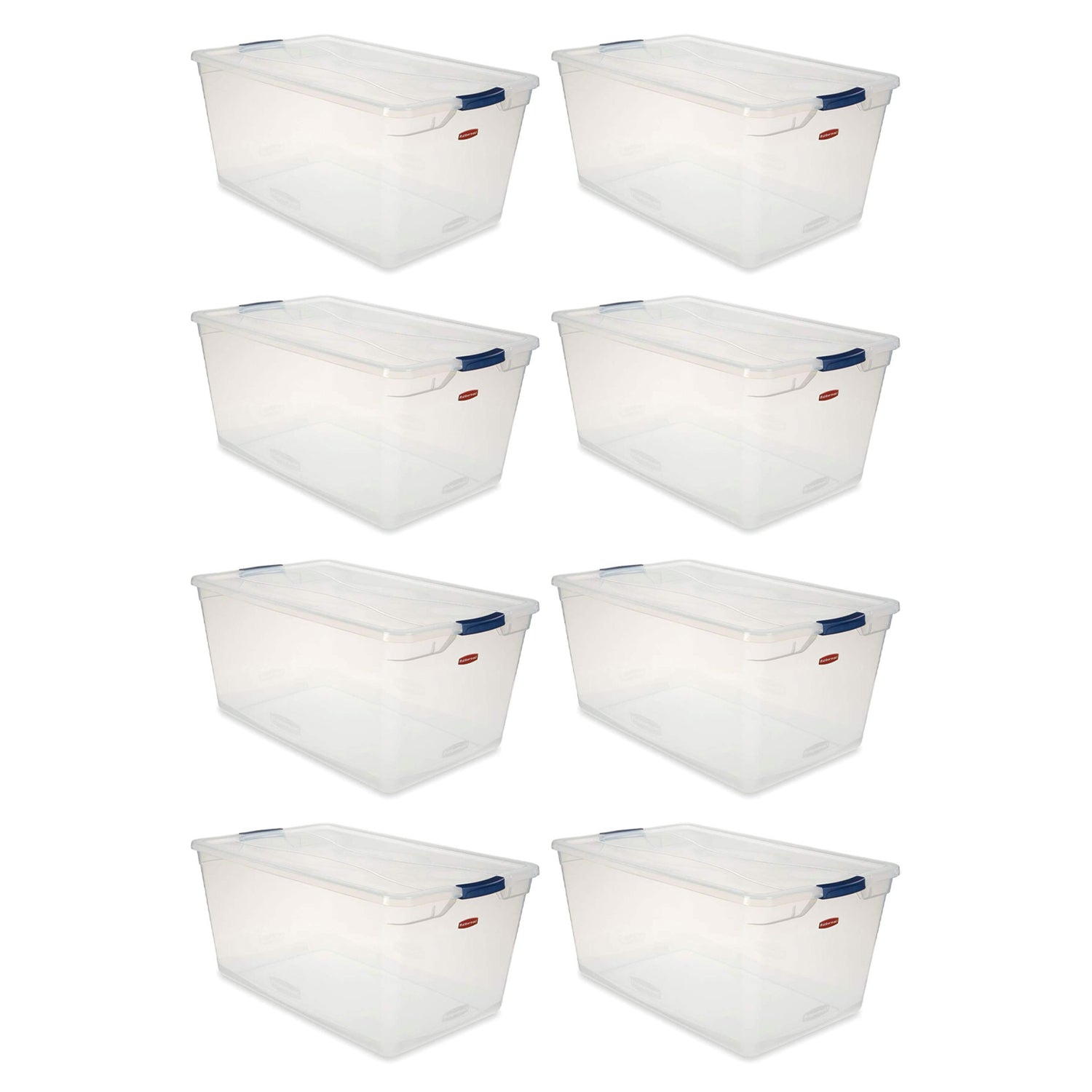 Keep your items organized with this 8-Pack of Rubbermaid Cleverstore 95-Quart Plastic Storage Containers.