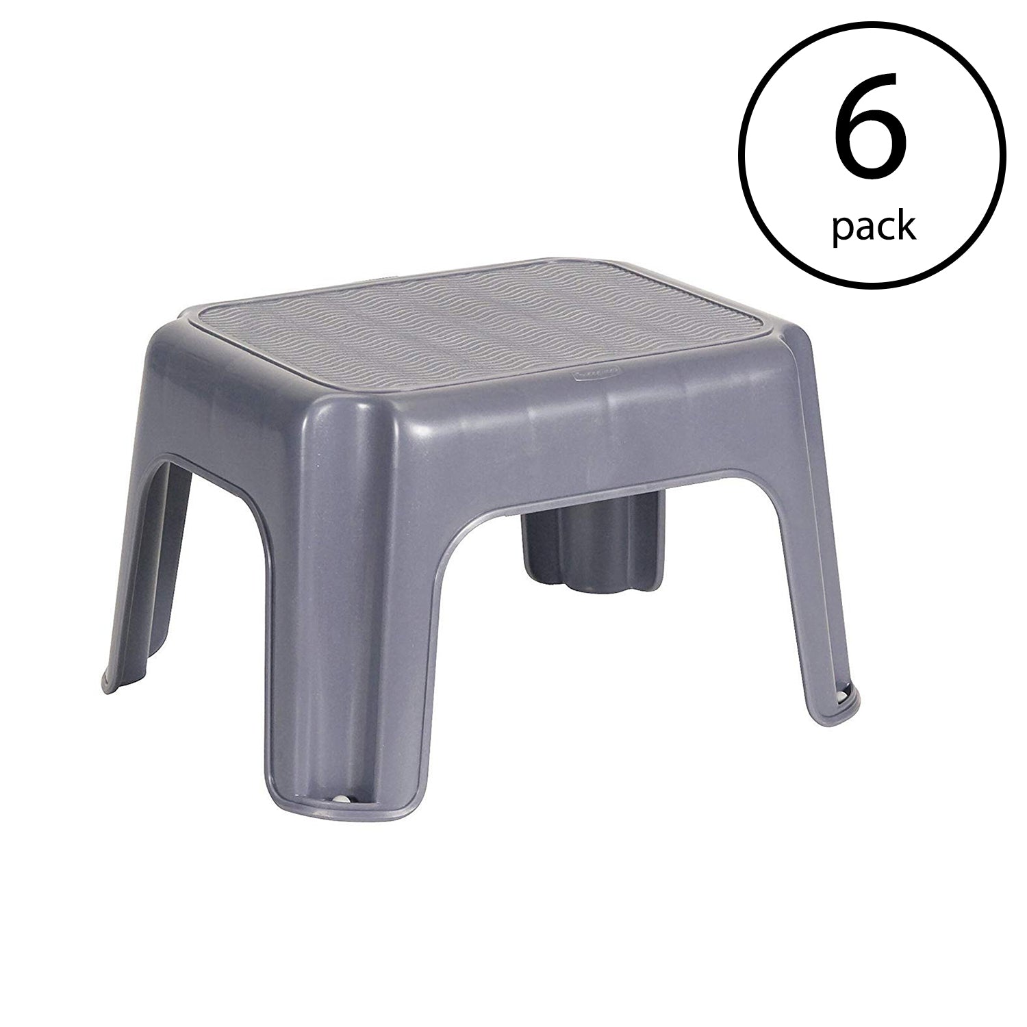 Rubbermaid Durable Plastic Step Stool w/ 250-LB Weight Capacity, Gray (6 Pack)
