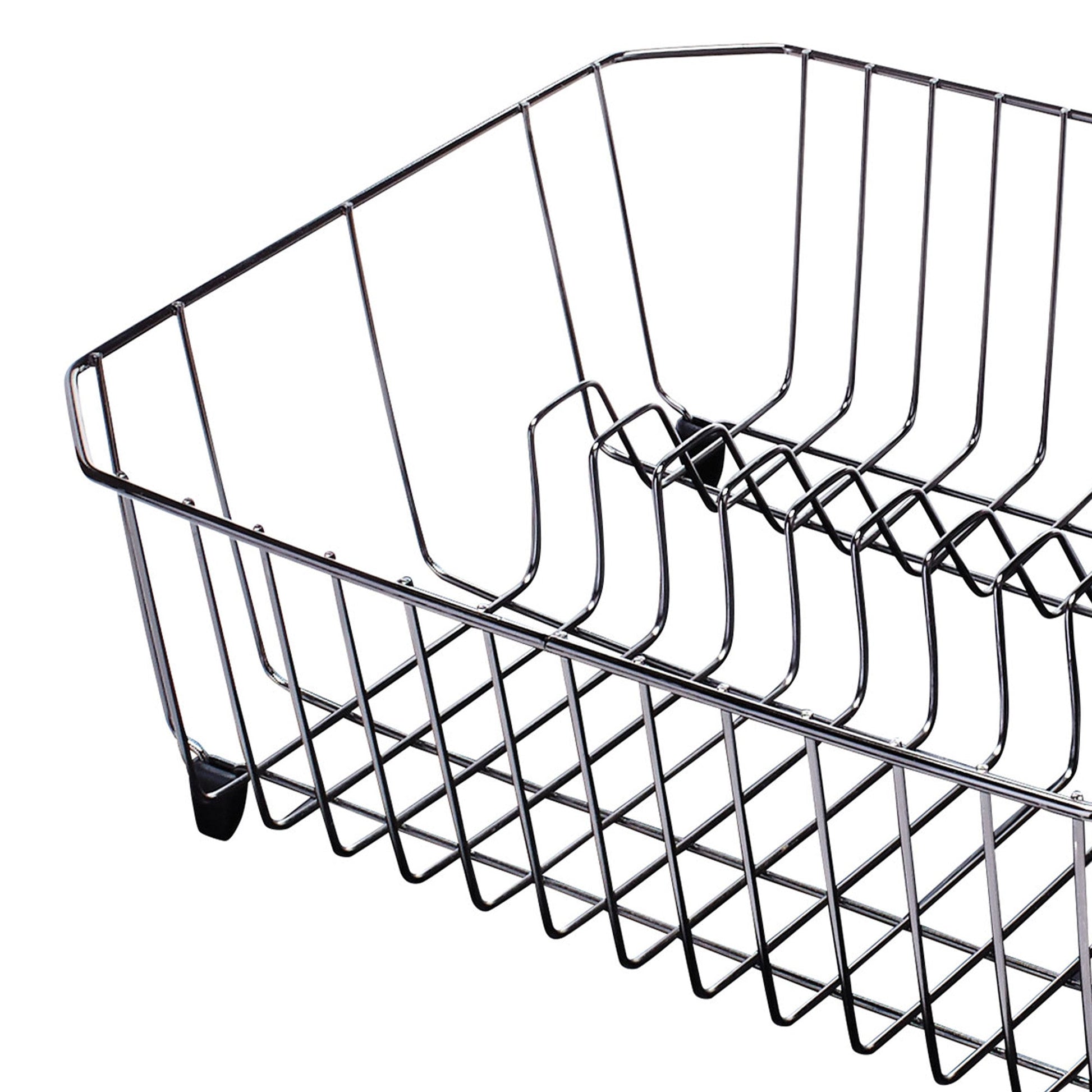 Styled with a sleek black chrome finish, this accessory will complement the rest of your home kitchen decor, while the solid steel construction ensures increased durability for lasting use. The drying rack will also lead excess water back into the sink, keeping your kitchen clean at all times.