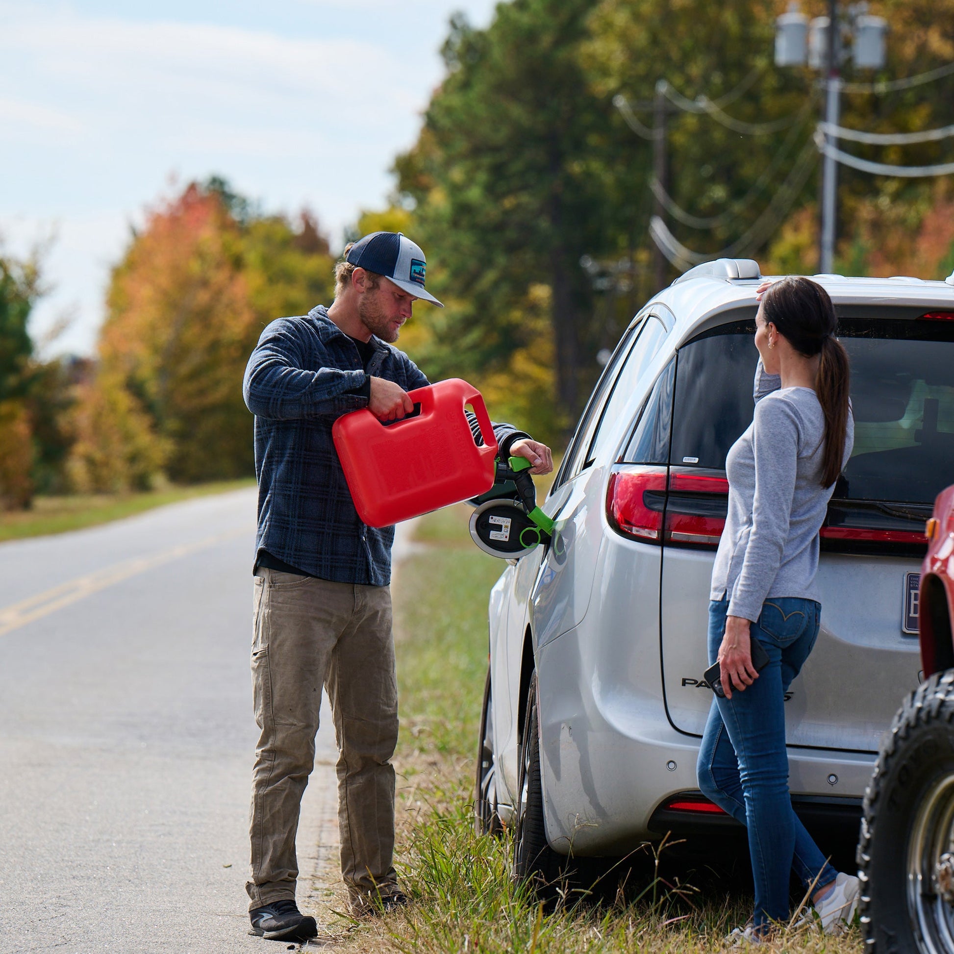 Built with an easy-to-pour design, this gas can is just what you need for convenience when you're on the go. Whether mowing an acreage, doing chores at the farm, or gearing up for ATV adventures, this fuel container ensures you can refill your vehicles quickly and efficiently with the controllable flow and ample 5-gallon capacity. Not to mention, the included funnel is designed for newer vehicles with capless fuel tanks, allowing you to add fuel or additives to restricted or capless fuel tanks.