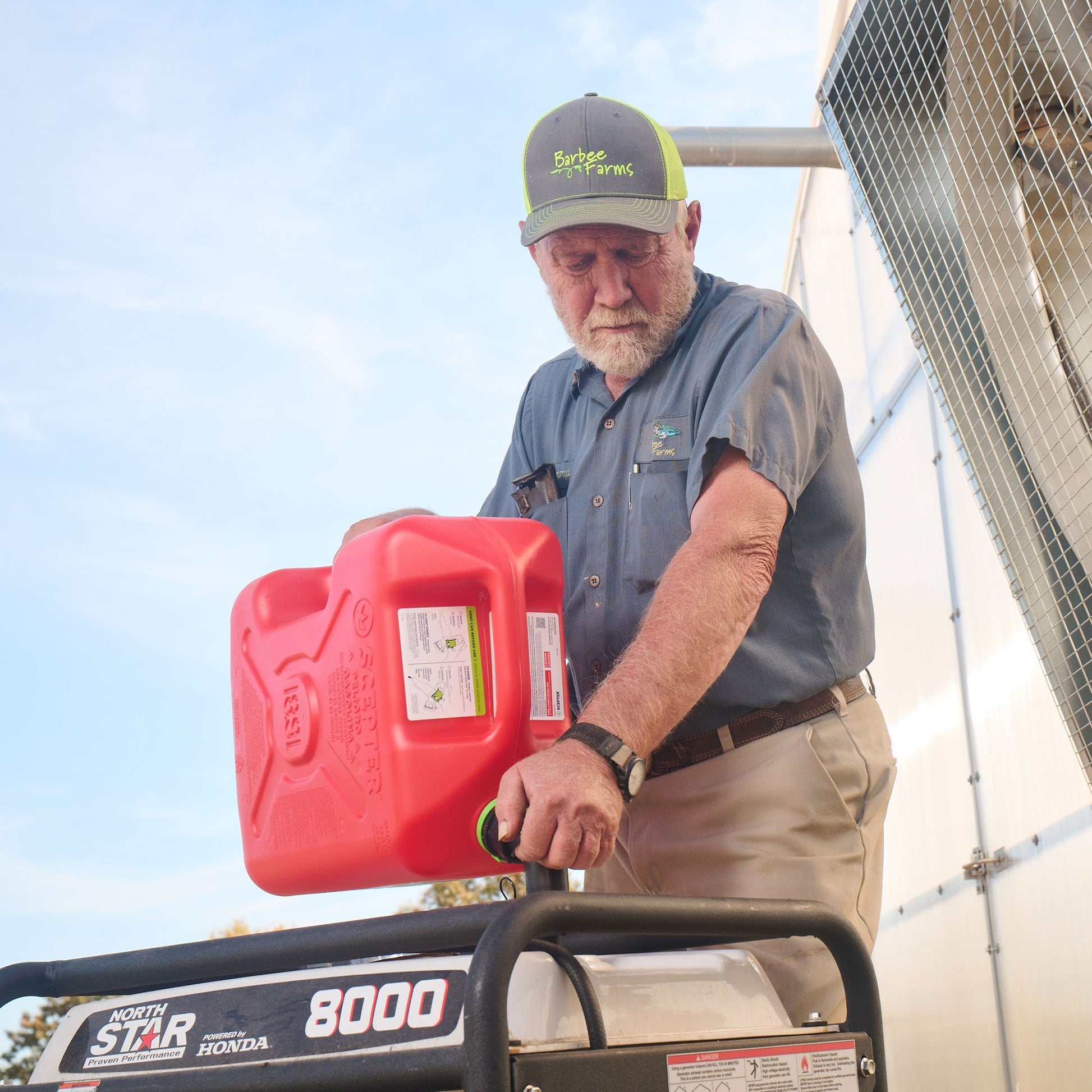 Built with an easy-to-pour design, these gas cans are just what you need for convenience when you're always on the go. Whether mowing an acreage, doing chores at the farm, or gearing up for ATV adventures, these diesel fuel containers ensure you can refill your vehicles quickly and efficiently with the controllable flow and ample 5-gallon capacity. The rugged plastic construction stands up to continuous use season after season and the squeeze-controllable flow ensures fast fills without spills. A top and back handle make this plastic jug easy to lift and carry and allow you to fuel up your machines seamlessly. These fuel jugs will be your much-needed companion when you want to keep your momentum without having to stop for a long or cumbersome refueling process.