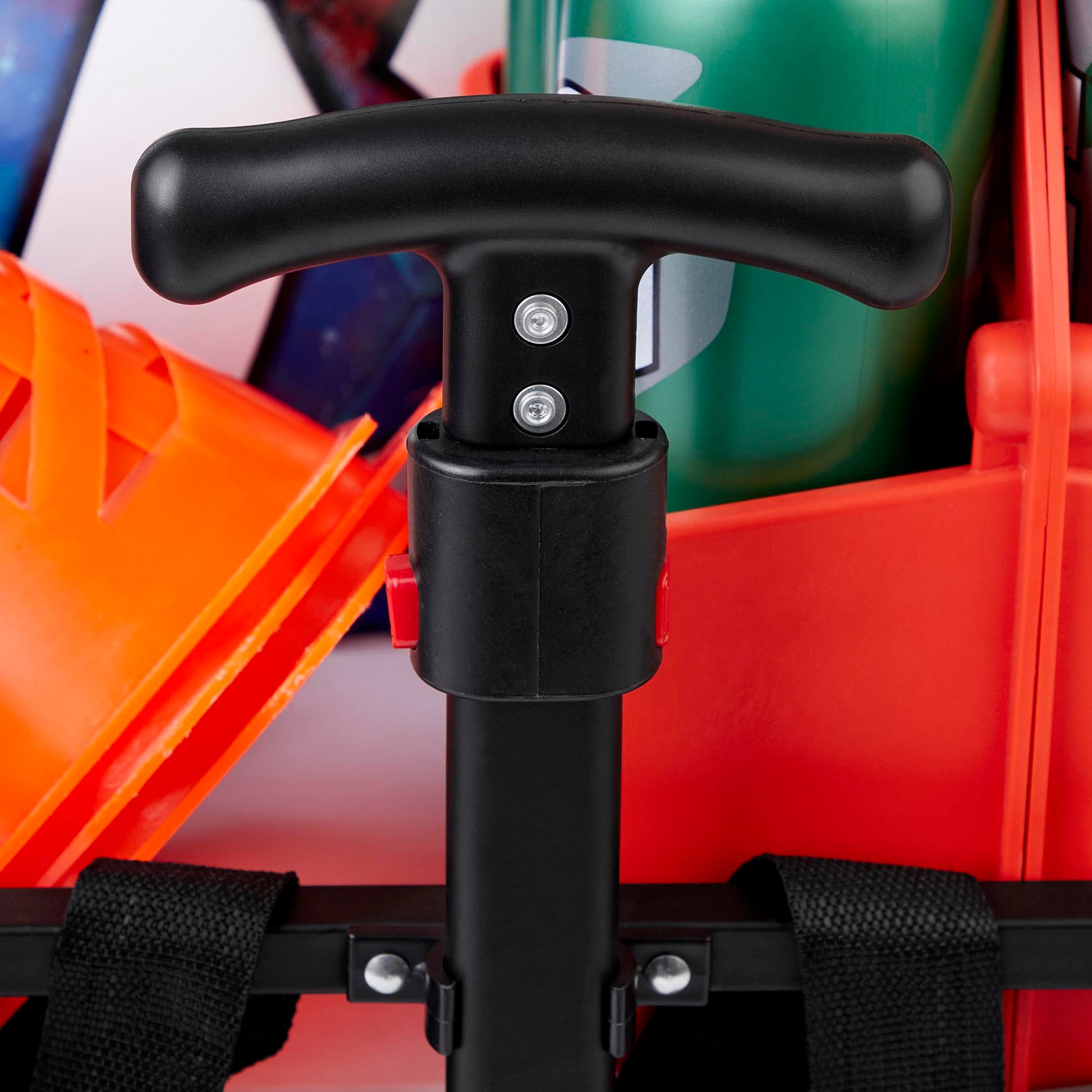 Constructed with a heavy-duty steel frame and durable 600D polyester fabric, this portable cart will hold up no matter what job you throw at it. Unlike other copycat carts, this one folds compactly and stores easily in your trunk, garage, or closet, ensuring easy transport. Plus, the best part is it takes only seconds to set up and use.