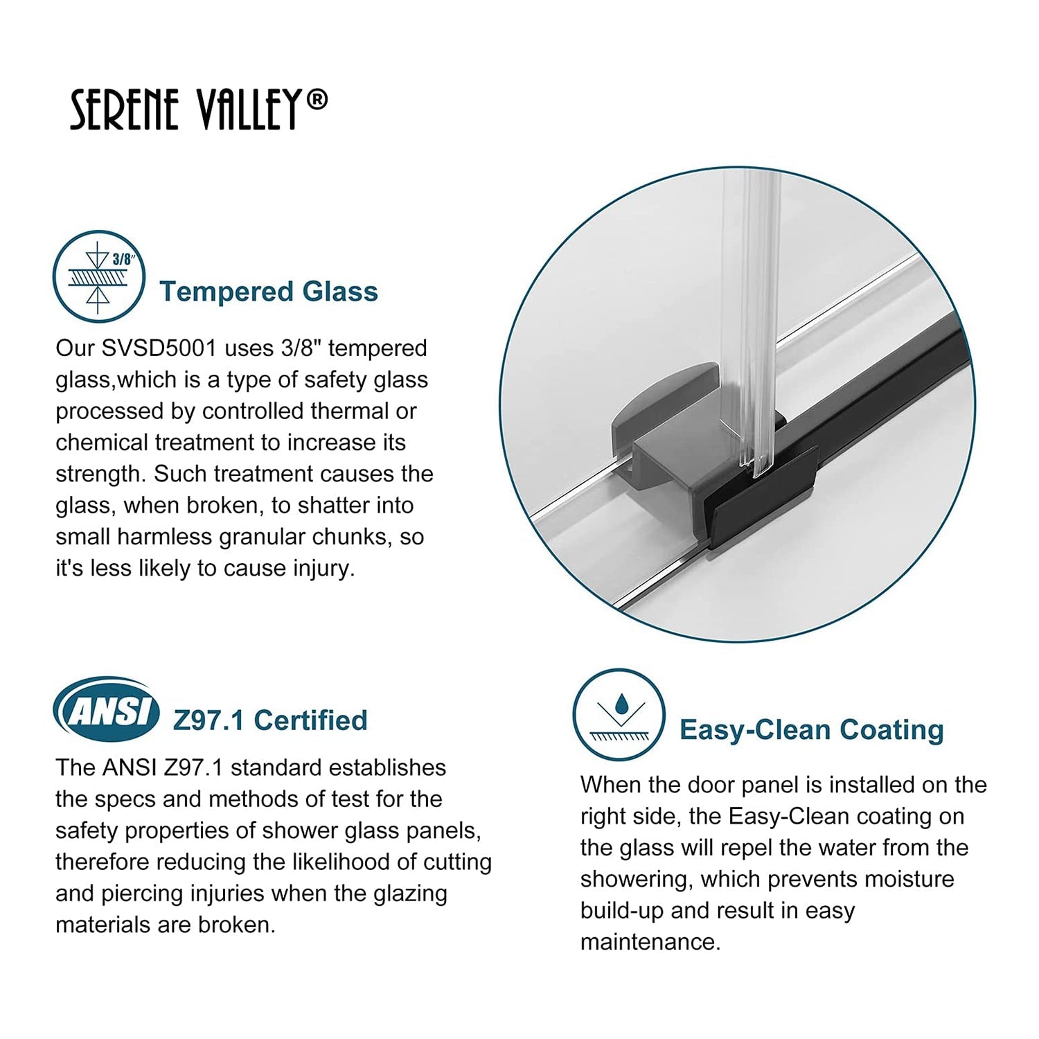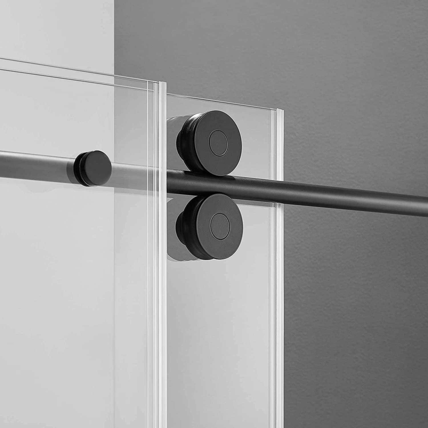 Serene Valley 60 x 74 Inch Big Roller Frameless Sliding Shower Door, Matte Black
