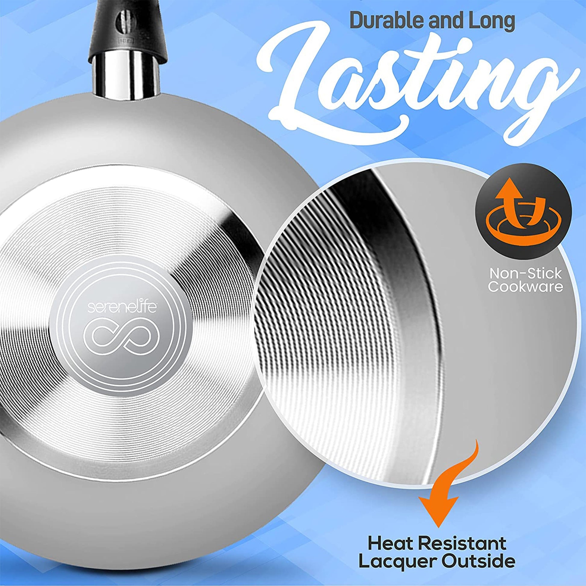 This cookware is made to last through years of regular cooking and washing. Cook a meal that'll impress guests with the SereneLife 15-Piece Non-Stick Chef Kitchenware Cookware Set.