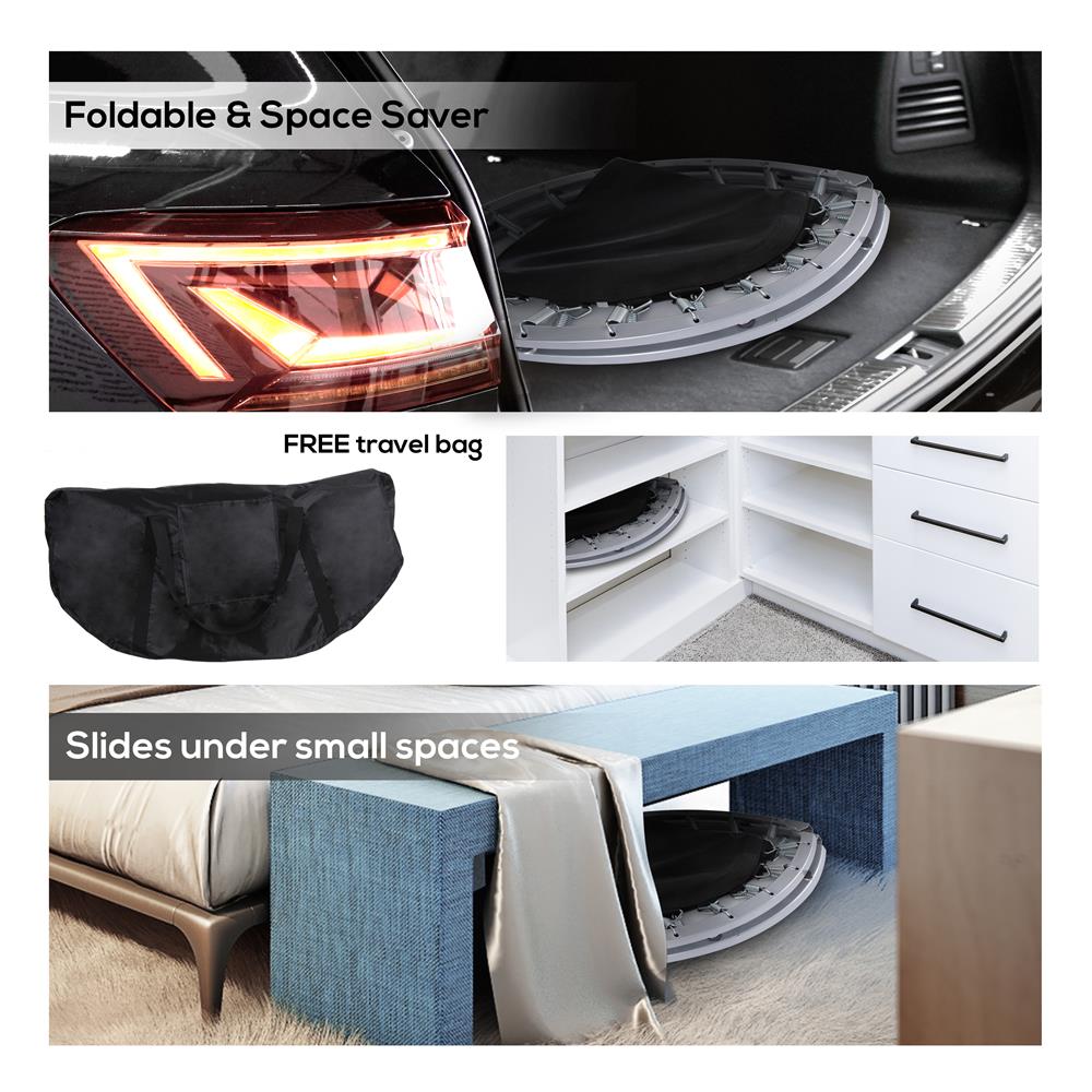 With a heavy-duty and durable construction, this exercise trampoline can support up to 220 pounds, allowing you to endlessly bounce without damaging it or causing sudden accidents. To top it all off, this trampoline is a total space saver and very easy to assemble and disassemble. Once you're done with your workout, fold it away and store it in the included kitbag to put away.