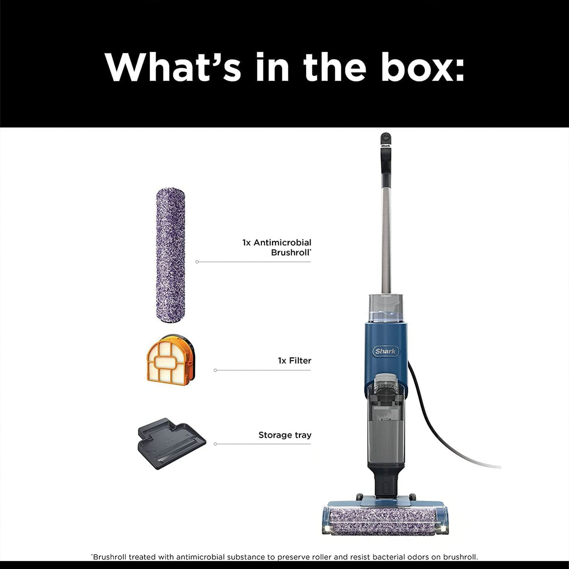 This cleaner is designed for versatility and is suitable for all sealed hard floors, including hardwood, tile, marble, and laminate. Plus, this multi-purpose vacuum is equally effective at removing surface dirt and odors from area rugs, ensuring a comprehensive cleaning for your entire home. Featuring debris filtration technology in the dirty water tank, this vacuum separates solids from liquids for quick and hassle-free disposal. Simply place the upright vacuum on its tray after each use and activate the self-clean mode for effortless maintenance. With this vacuum cleaner for your home you'll receive everything you need to revolutionize your cleaning routine, including 1 brush roll, 1 foam filter, a storage tray, and a charger (cleaning solution included).