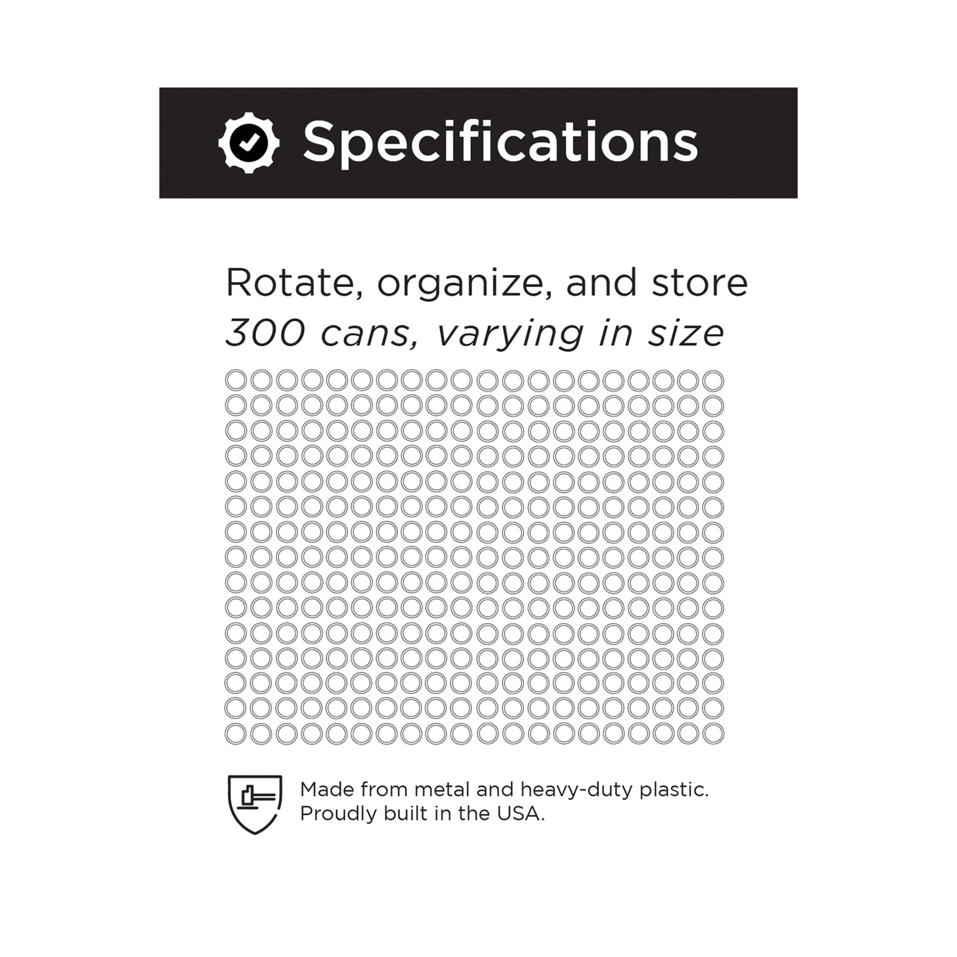 - Accommodate up to 300 cans of various sizes with this versatile organizer