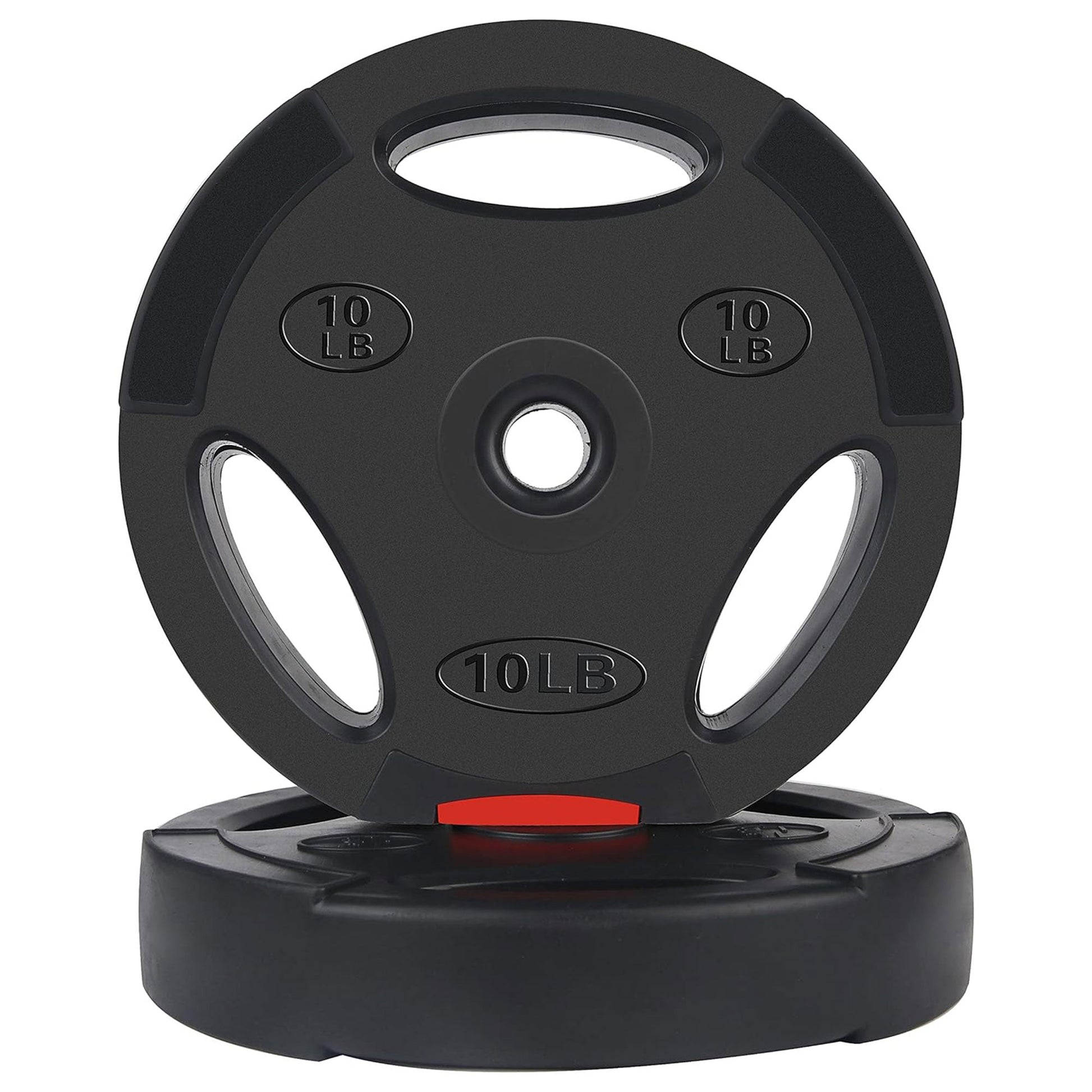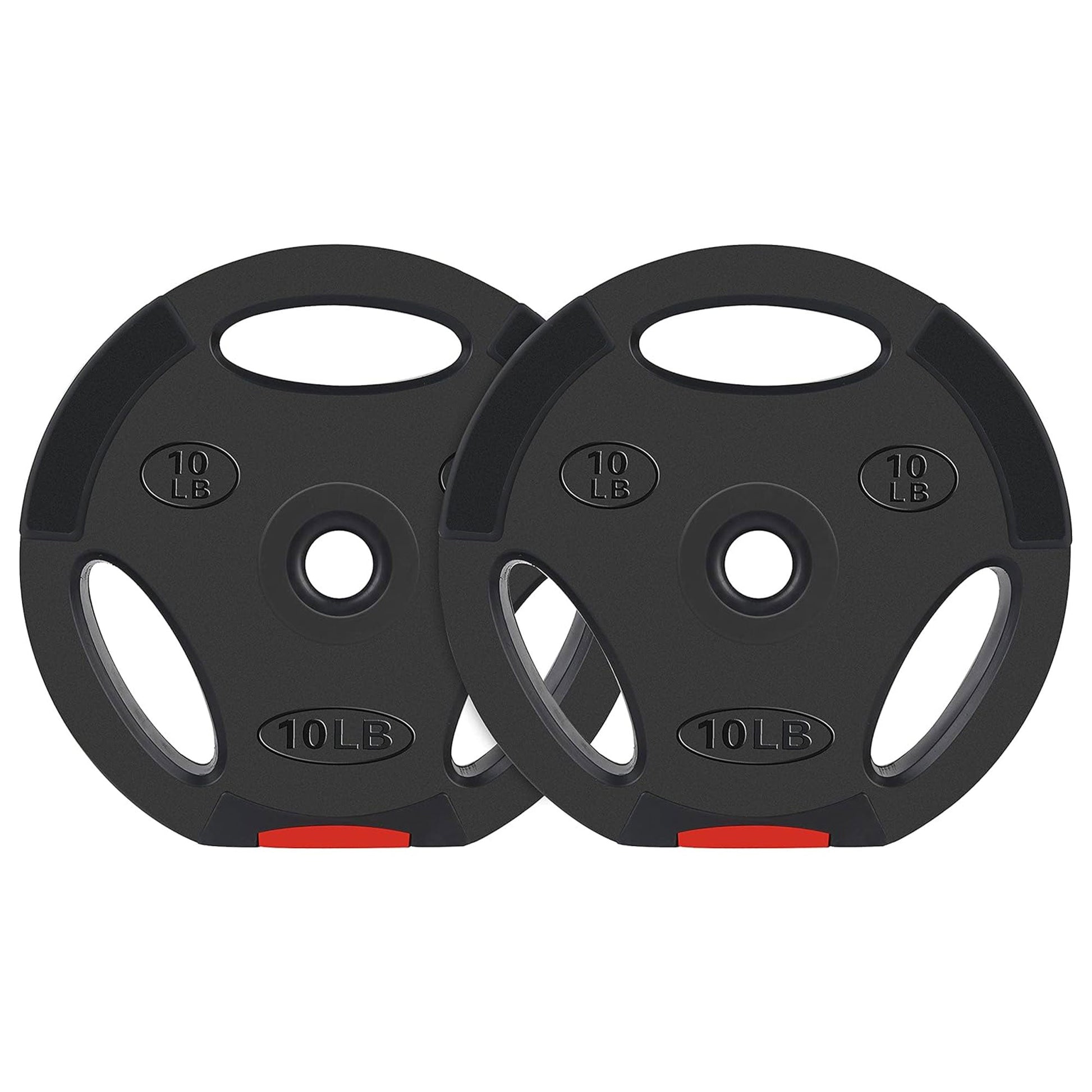 Signature Fitness Standard 10 Pound Coded Olympic Weight Plate, Black (Set of 2)